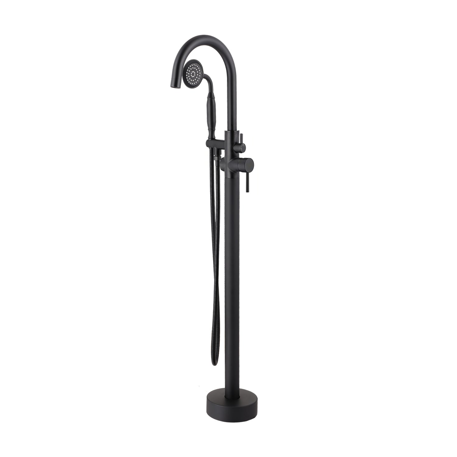 Freestanding Floor Mount Single Handle Bath Tub Filler Faucet with Handheld Shower in Matte Black
