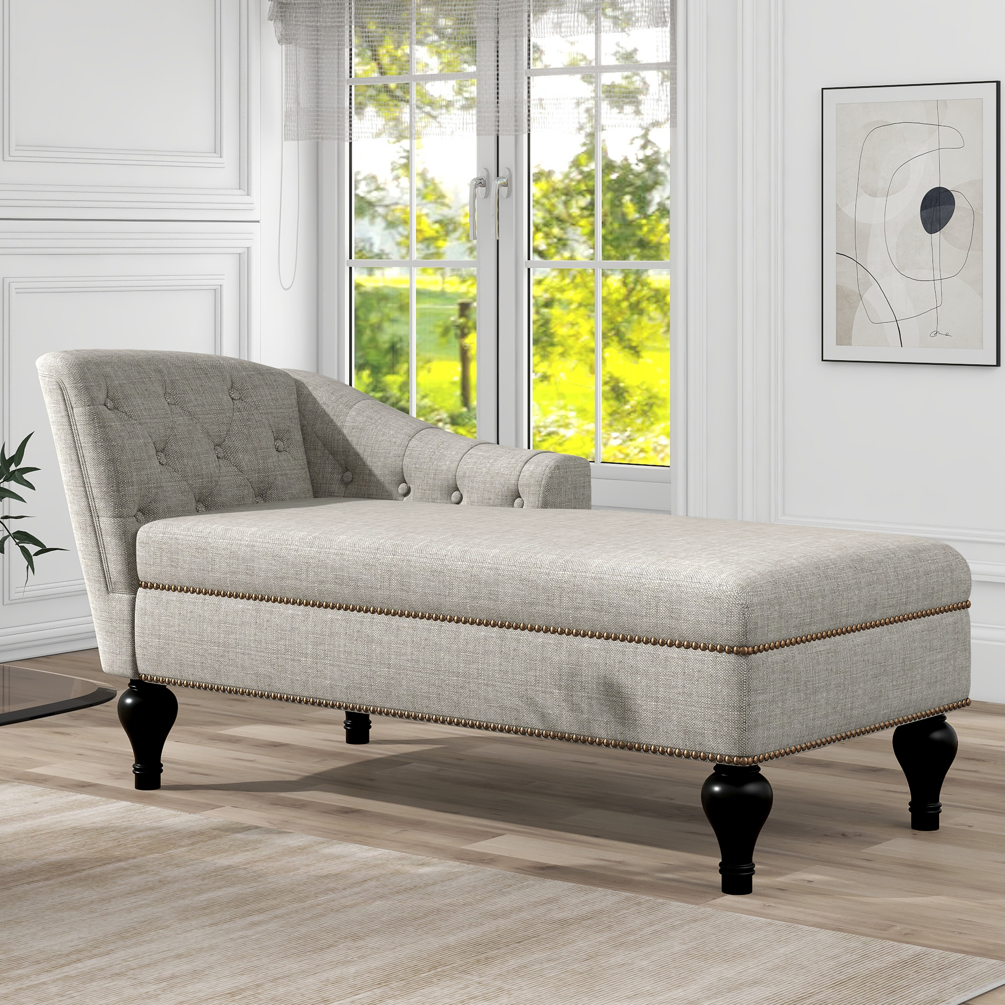 [New] Chaise Lounge Indoor Chair Tufted Fabric, Modern Long Lounger for Office or Living Room, Nailheaded ,Sleeper Lounge Sofa
