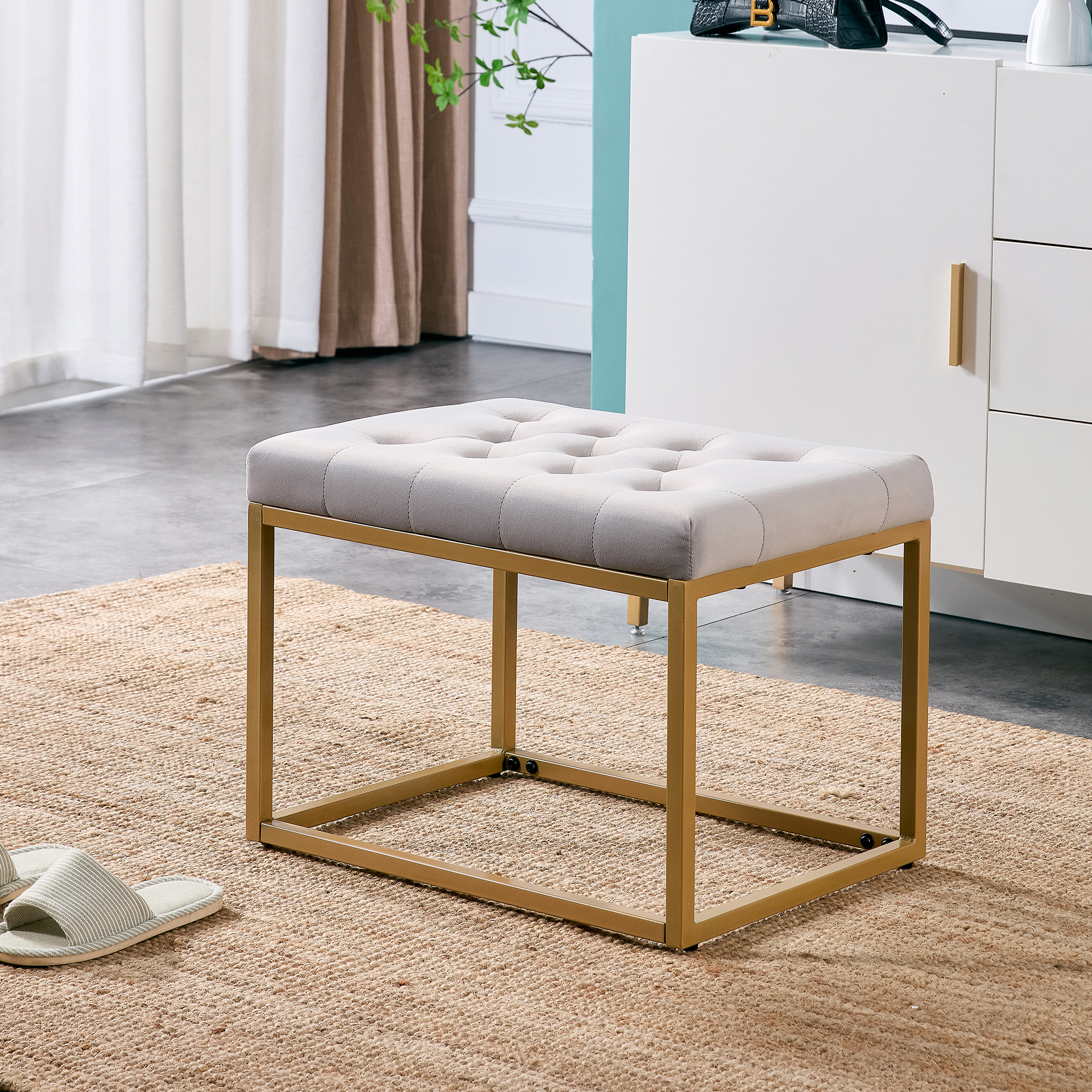 Button-Tufted Ottoman Bench, Upholstered Velvet Footrest Stool Accent Bench for Entryway Living Room Bedroom.