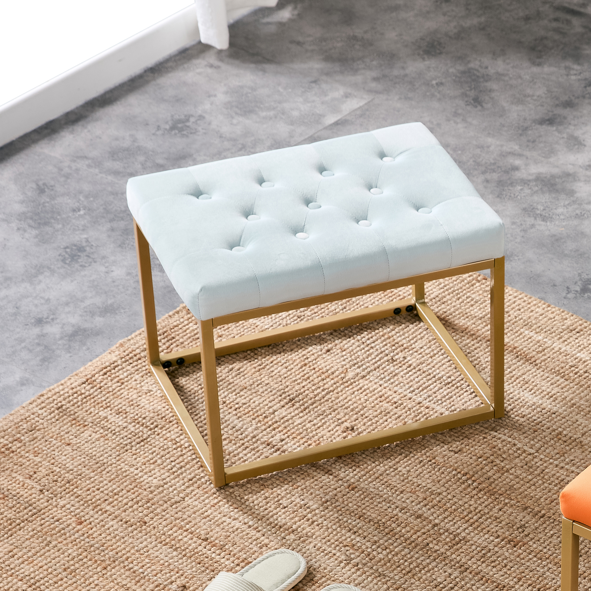 Velvet Shoe Changing Stool,Light green Footstool, Square Vanity Chair, Sofa Stool,Makup Stool .Vanity Seat ,Rest Stool. Piano Bench.Suitable for Clothes Shop,Living Room, Porch, Fitting Room Bedroom