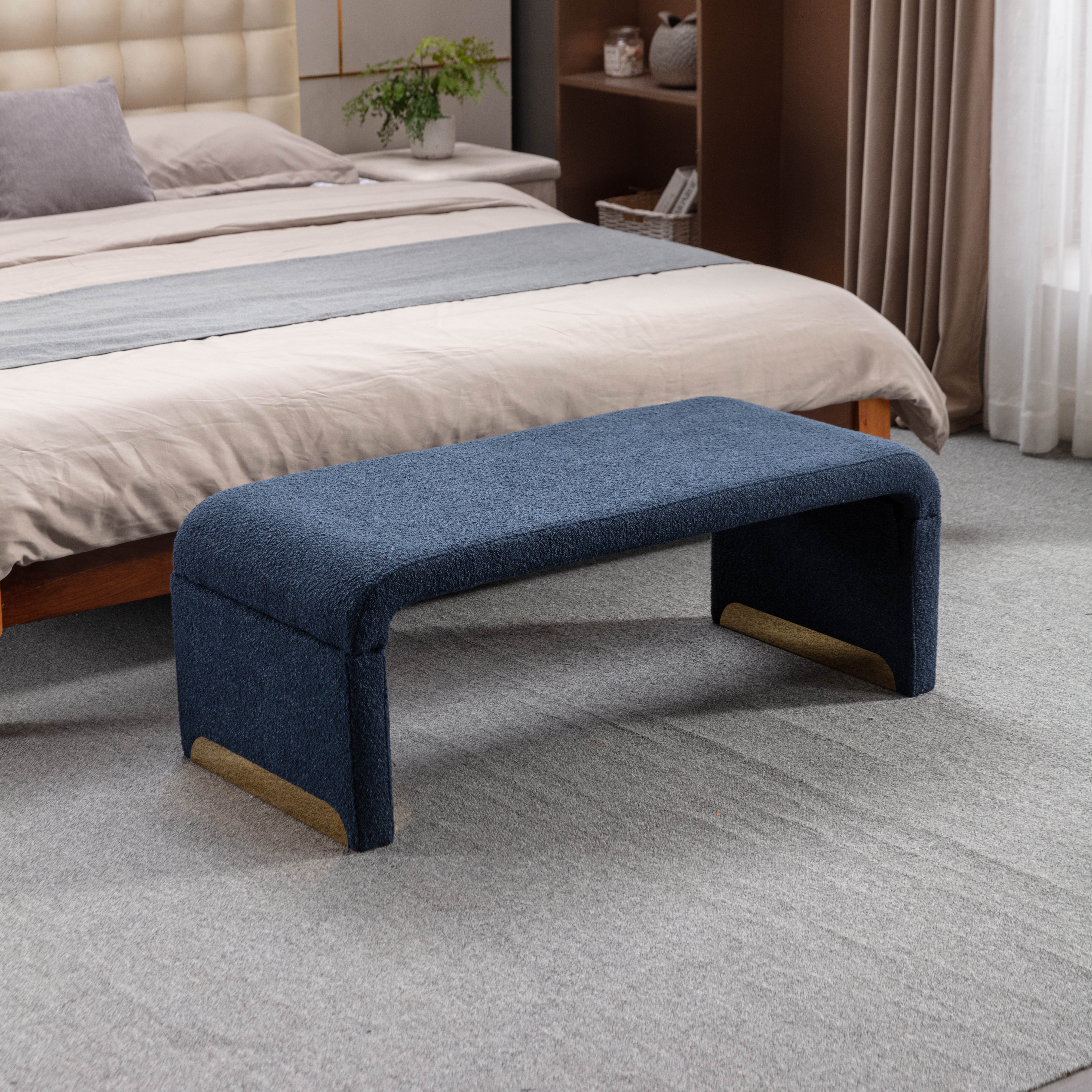 New Boucle Fabric Loveseat Ottoman Footstool Bedroom Bench Shoe Bench With Gold Metal Legs,Dark Blue