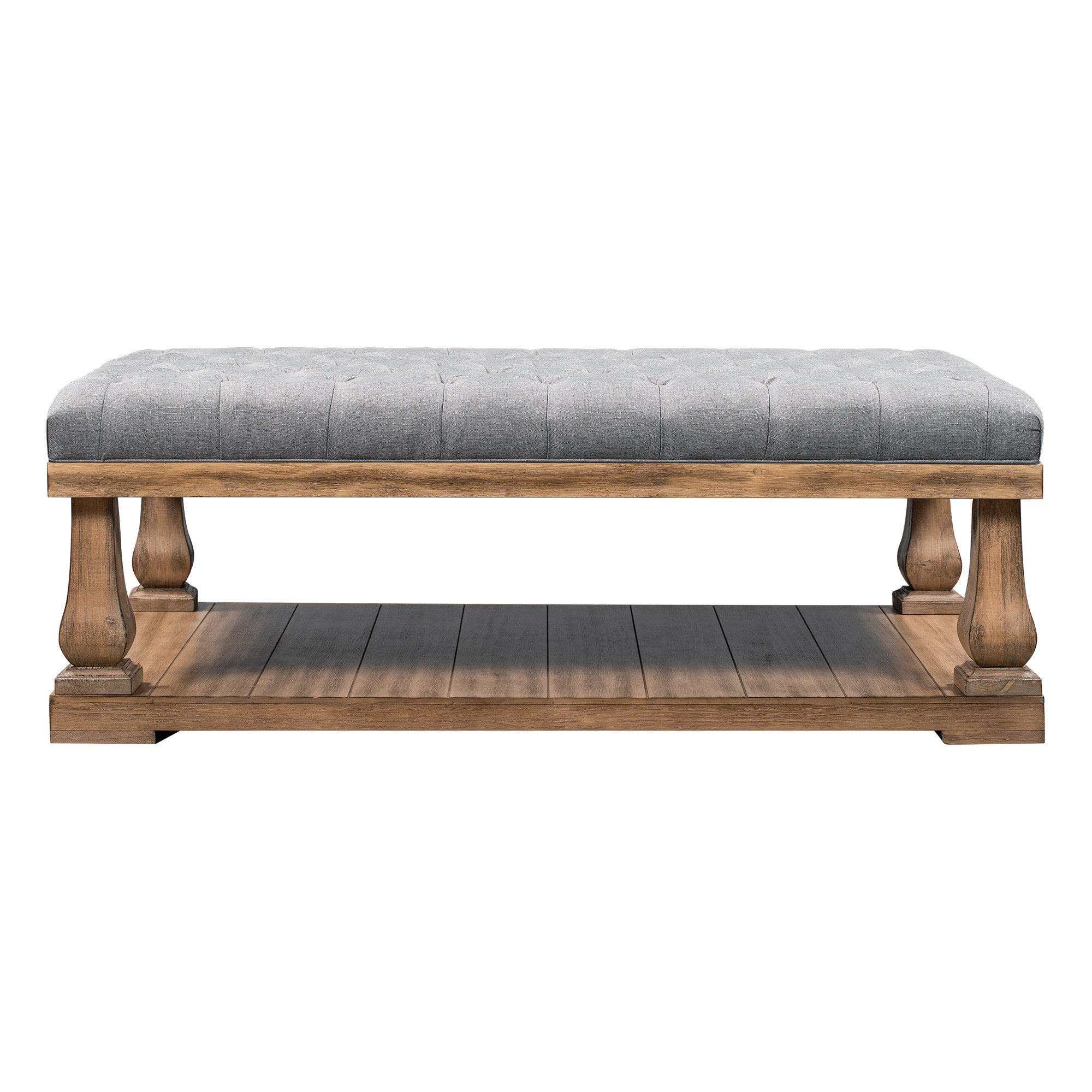 Upholstered Storage Bench with Wood Shelf, Bed End Bench with Padded Seat, Coffee table,End table, Hallway, Bedroom, Living Room(Grey)