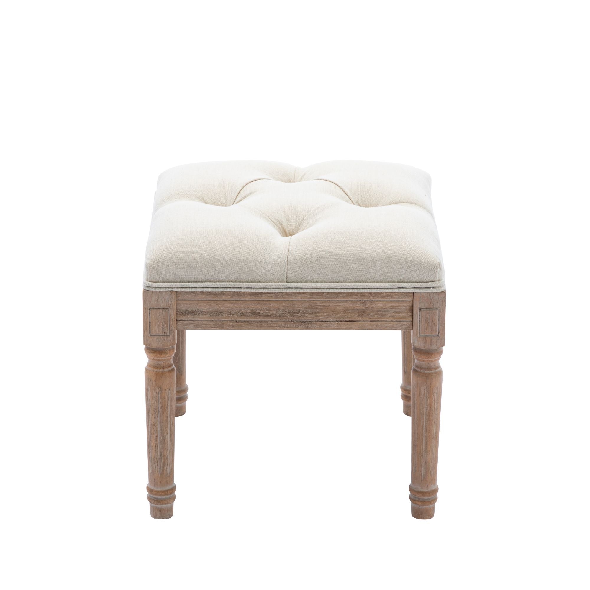 Padded Square Ottoman Benchand Rubber Wood Legs, Fabric Small Vanity Stool for Bedroom Living Room