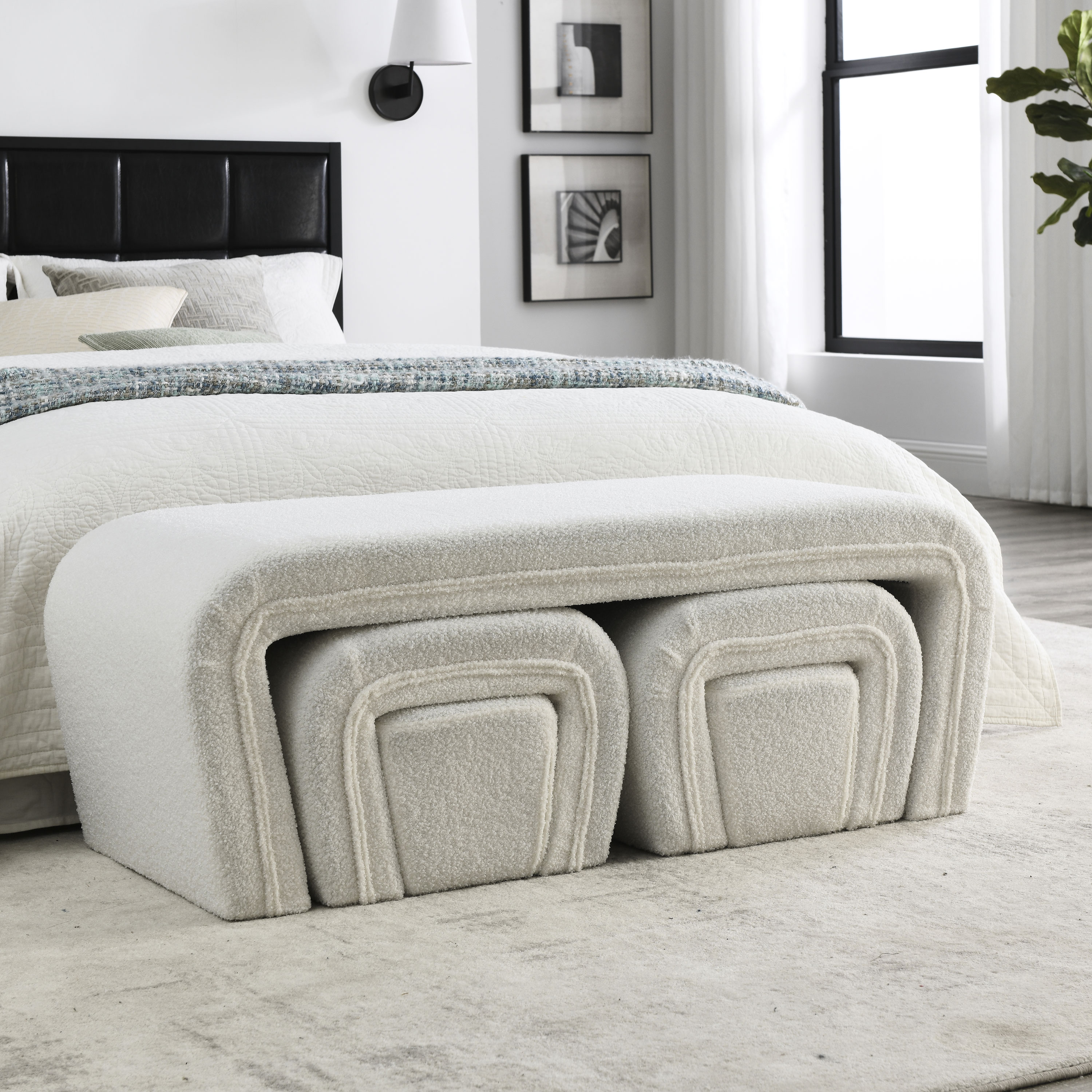 Welike 46' W Modern Contemporary Upholstered Nesting Bench, including Four nesting benches, teddy