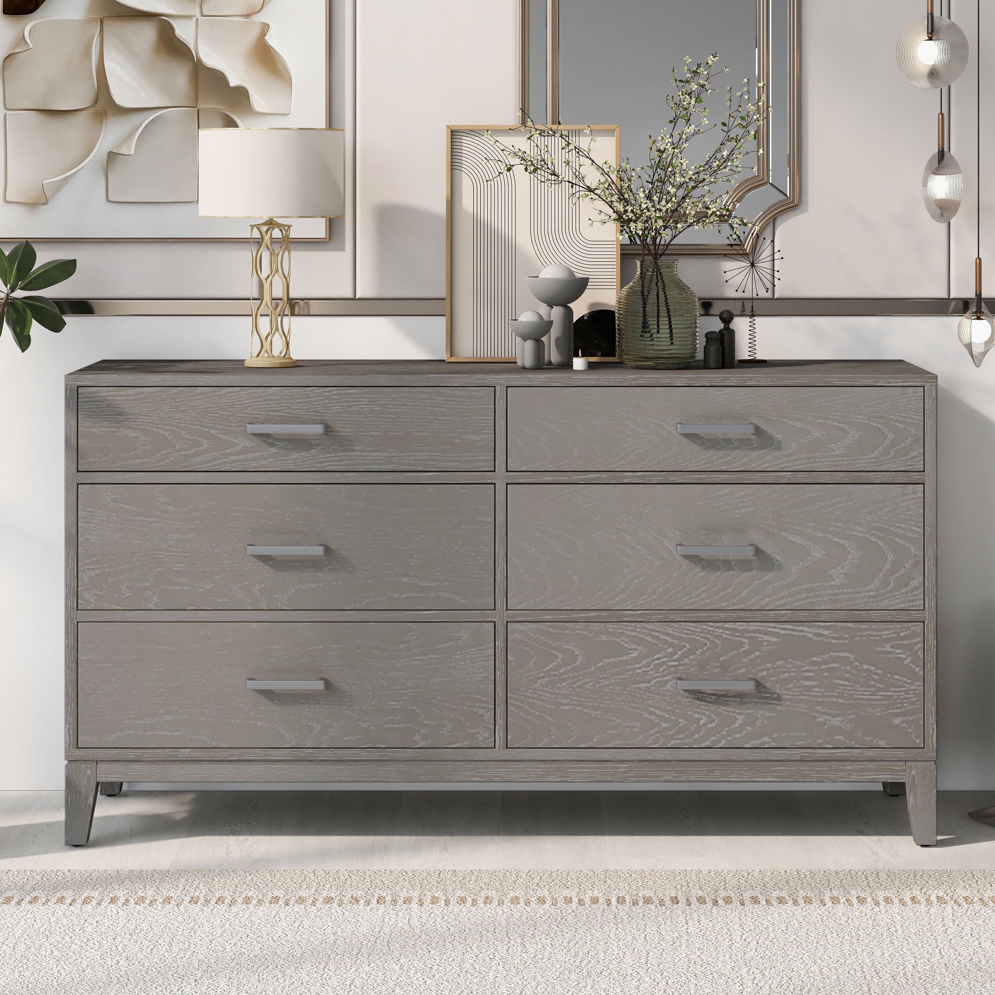 Chest of Drawers Wood Storage Cabinet with 6 Drawers