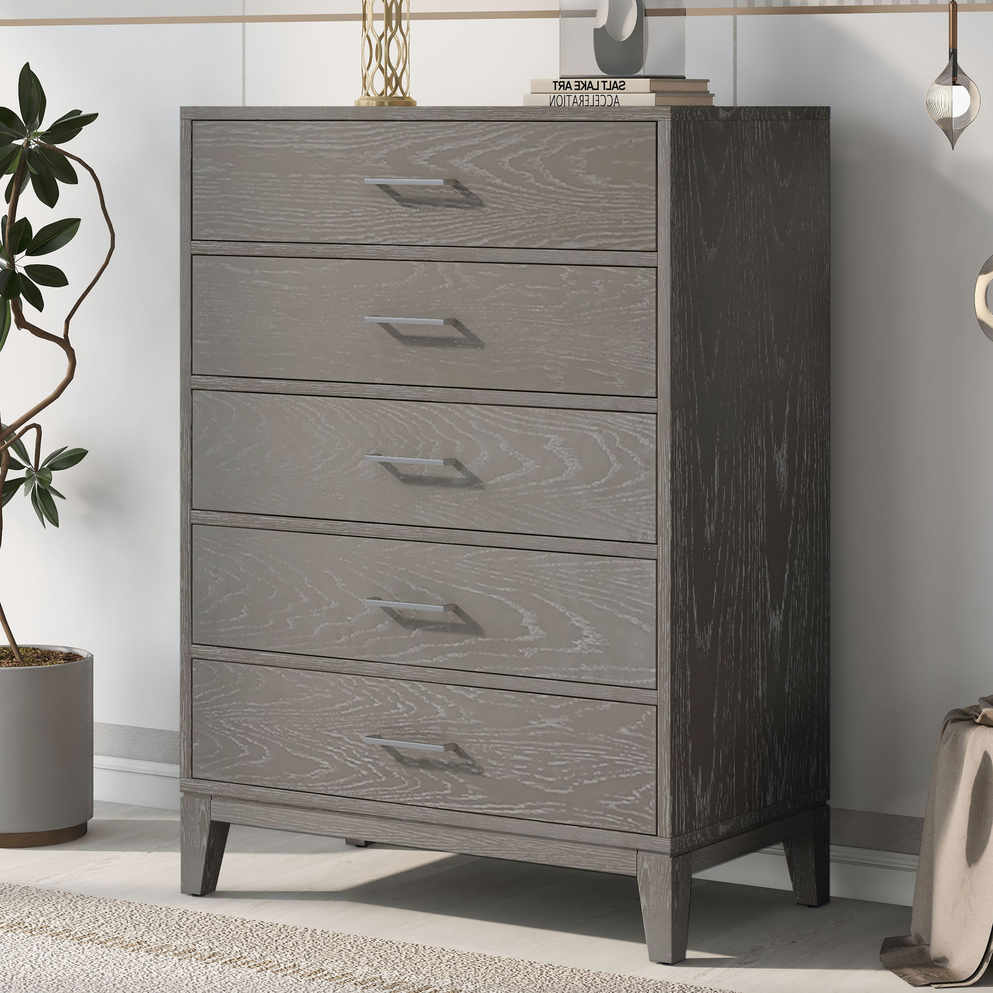 Modern Concise Style Solid wood Grey grain Five-Drawer Chest