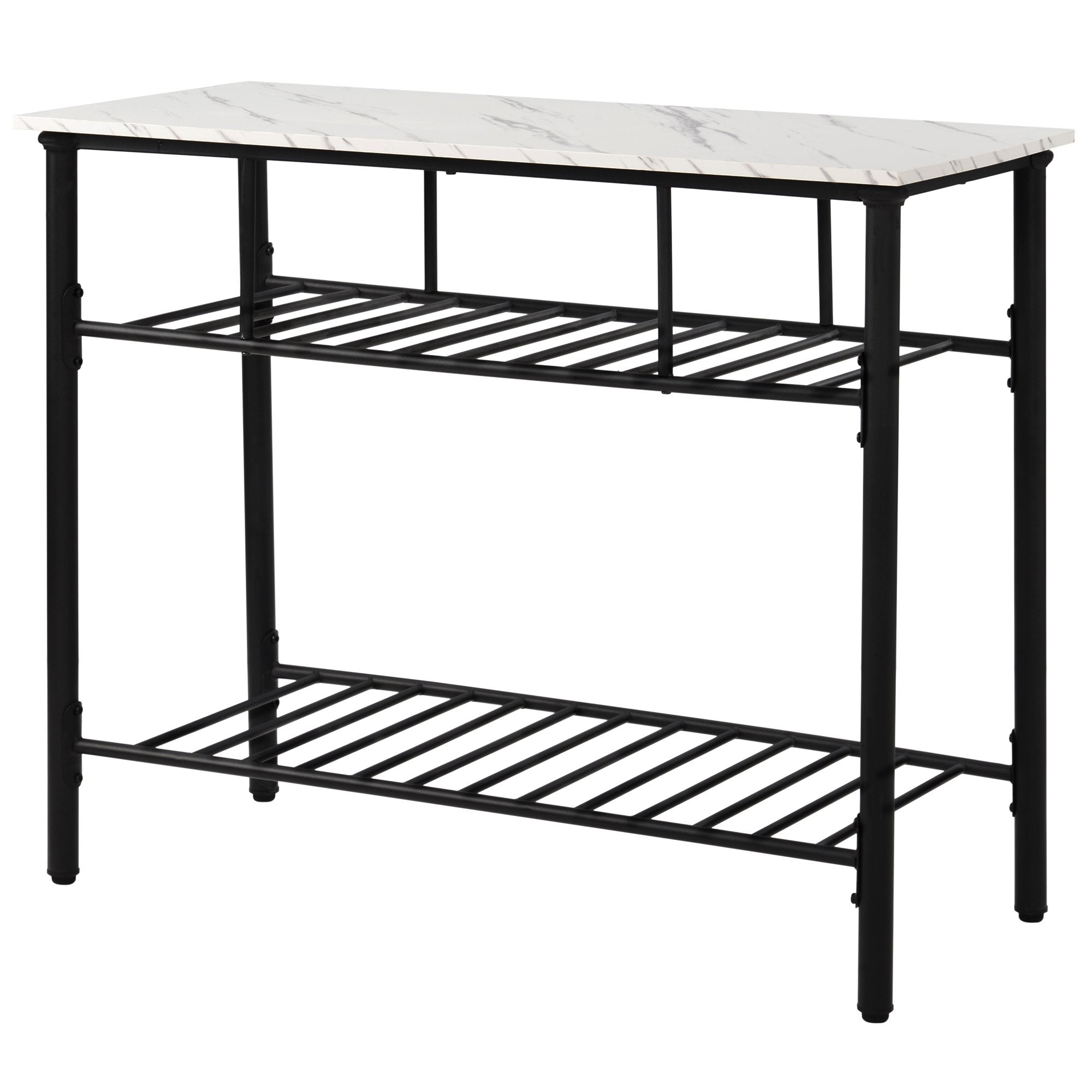 Rustic Farmhouse Counter Height Dining Kitchen Kitchen Island Prep Table, Kitchen Storage Rack with Worktop and 2 Shelves,Faux-Marble