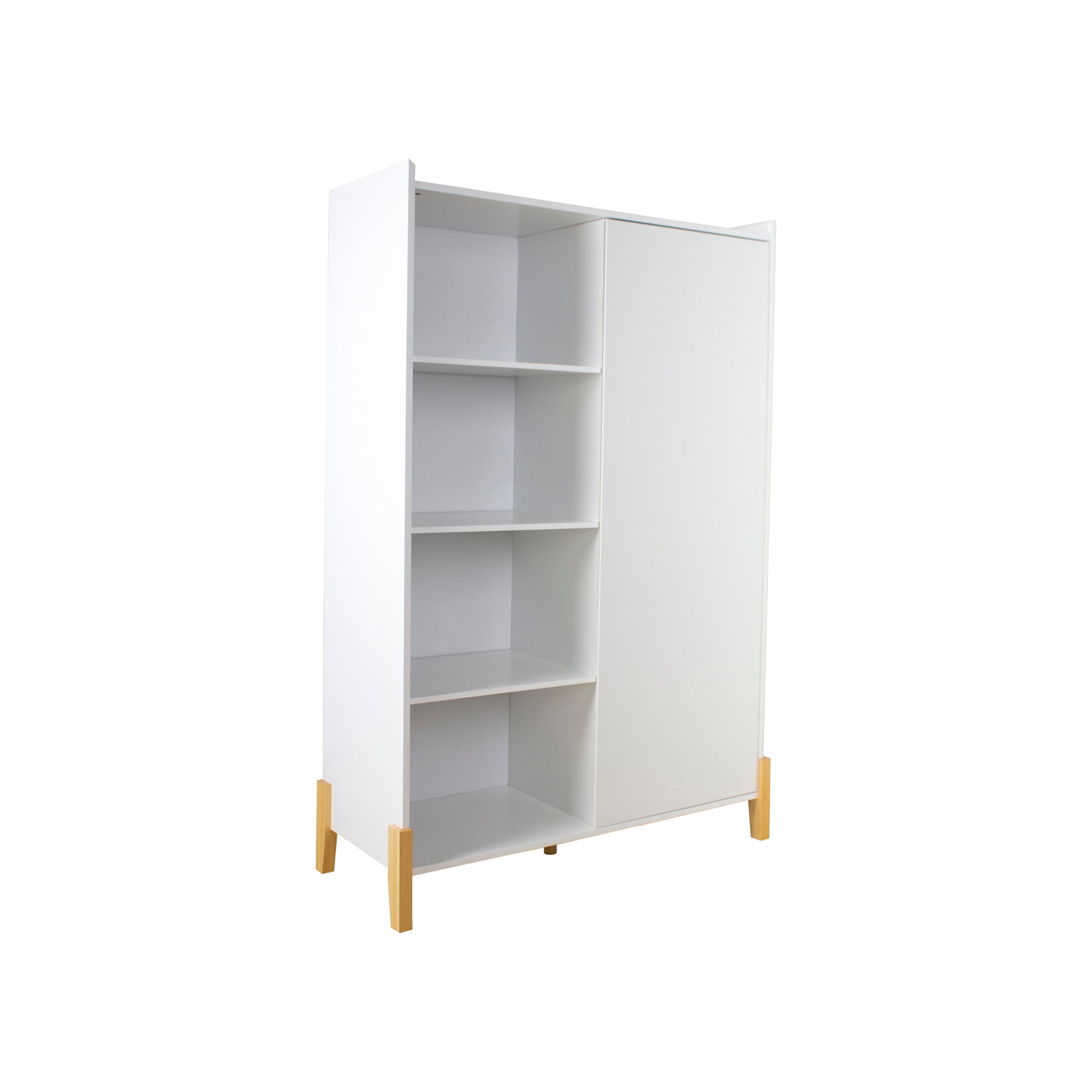 Floor Storage Cabinet with 1 Door and 4 Open Shelves, White