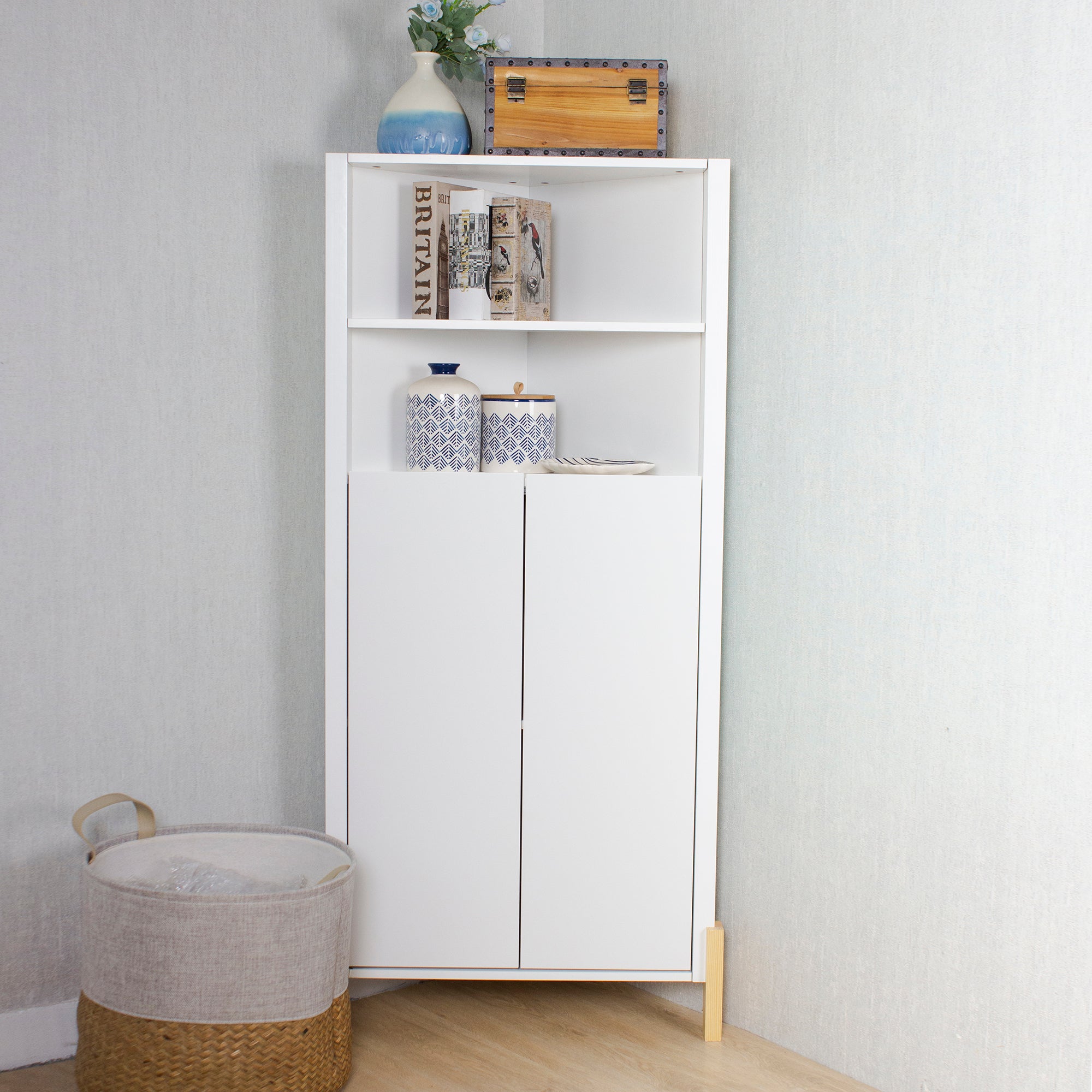 White Triangle Bathroom Storage Cabinet with Adjustable Shelves, Freestanding Floor Cabinet for Home Kitchen