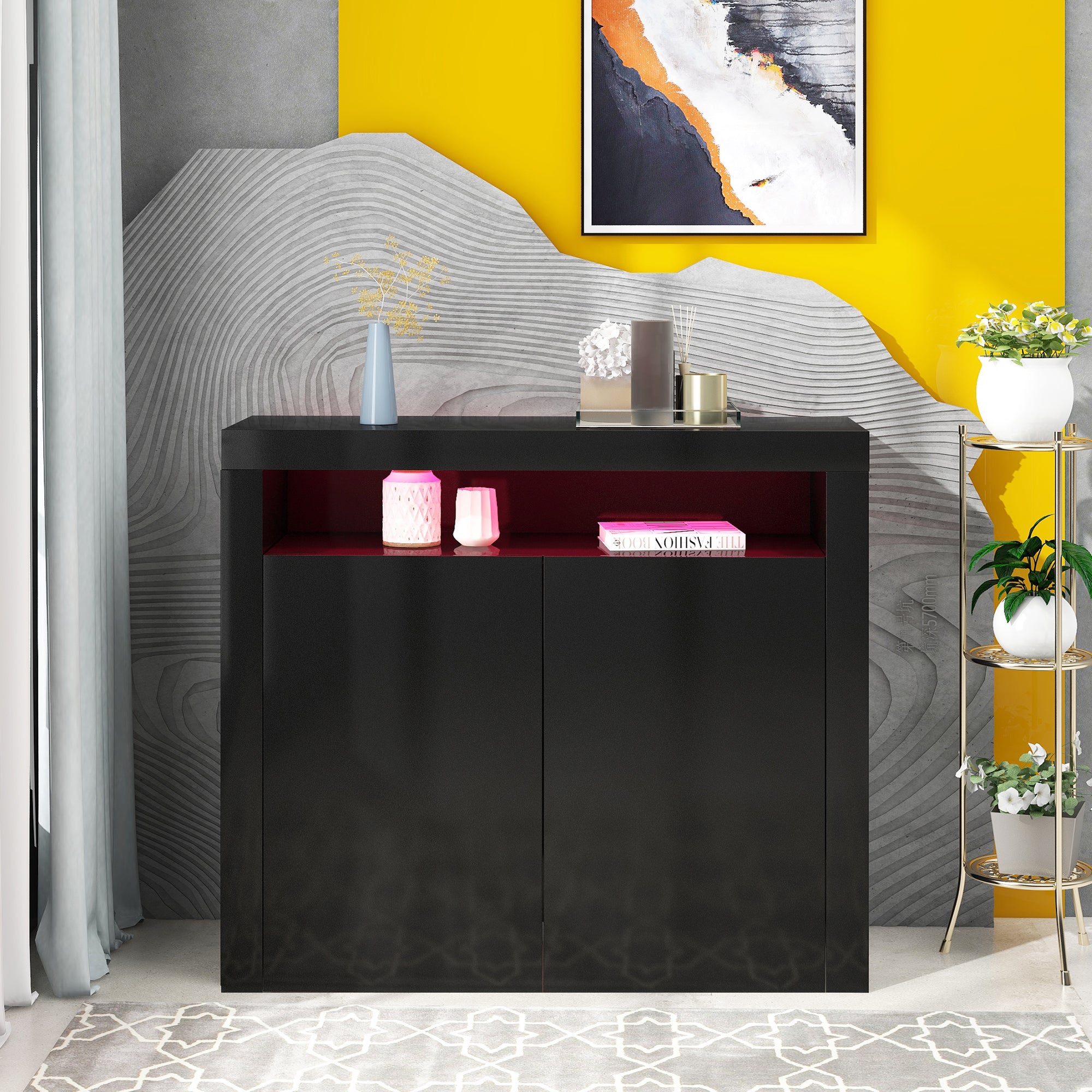 High Gloss Sideboard Modern 2-Door Storage Cabinet with LED Lights, 16 Colors