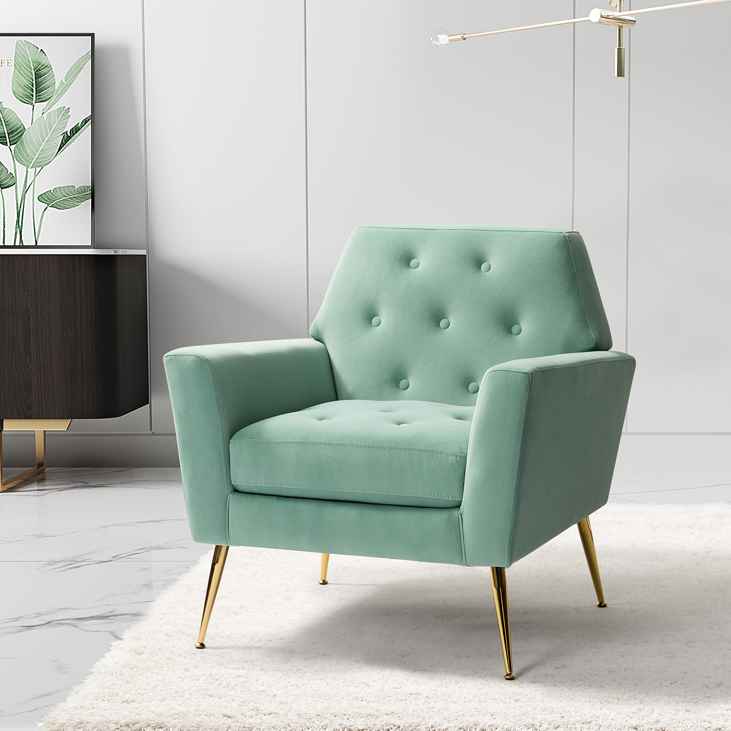 Velvet Accent Chair, Wingback Arm Chair with Gold Legs, Upholstered Single Sofa for Living Room Bedroom
