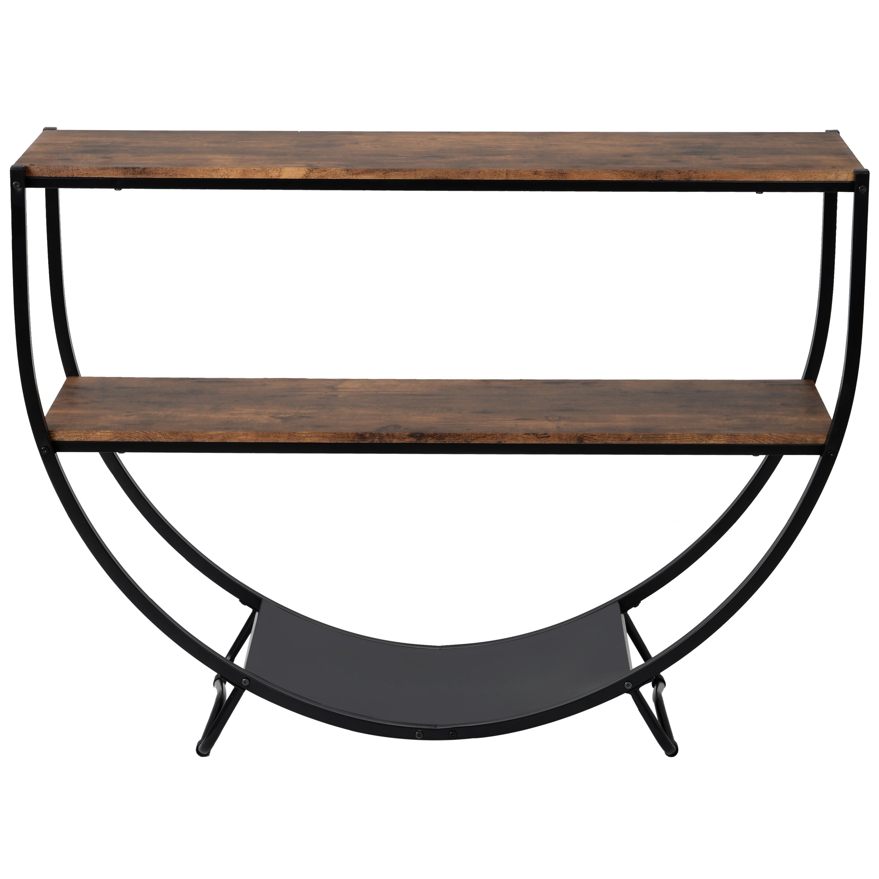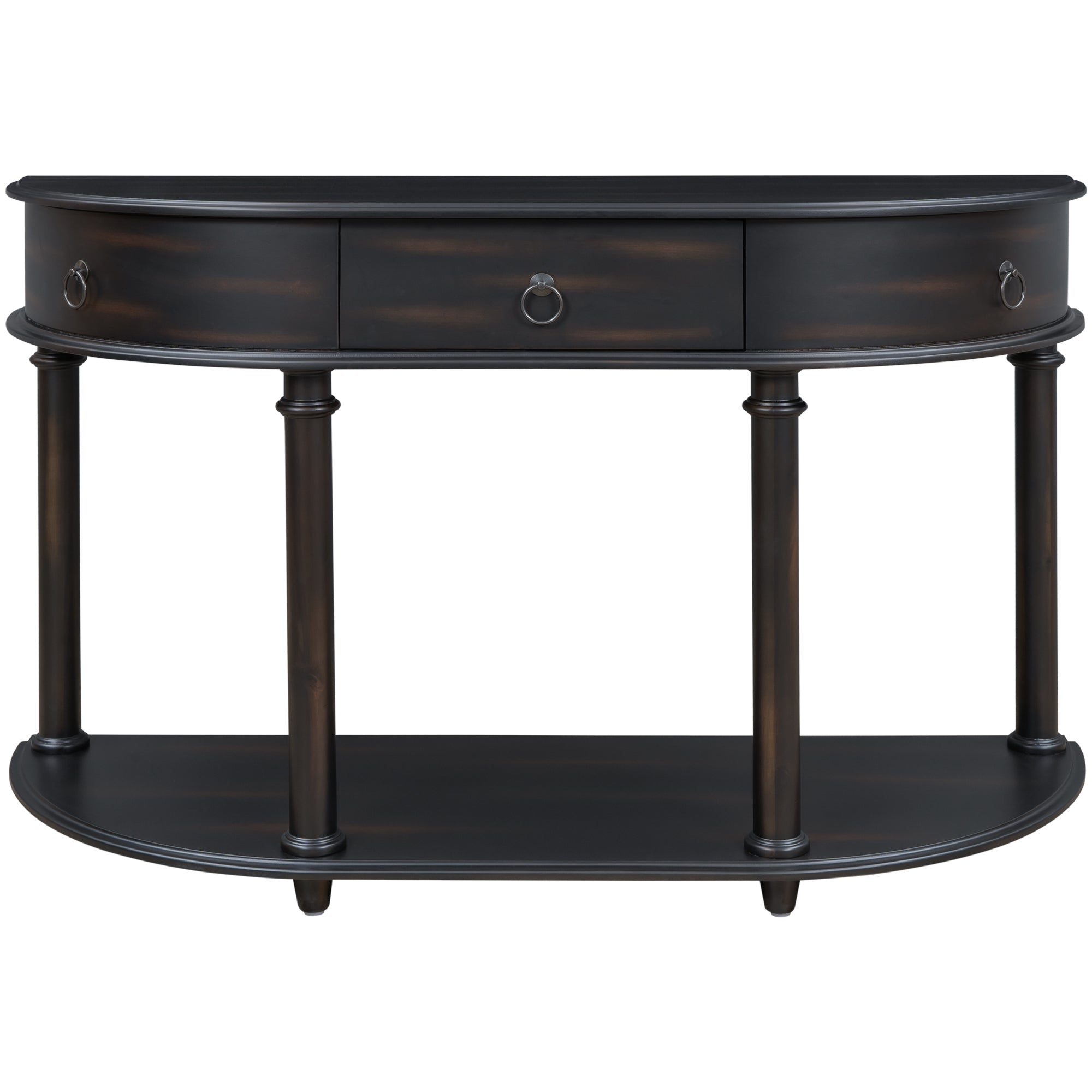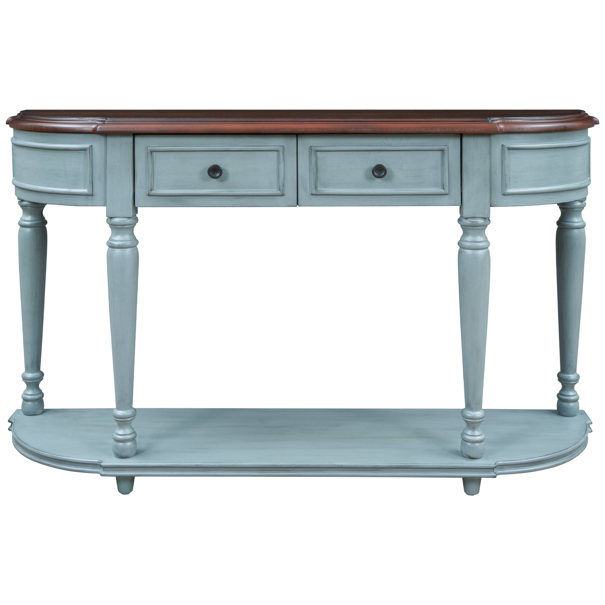 Retro Circular Curved Design Console Table with Open Style Shelf Solid Wooden Frame and Legs Two Top Drawers