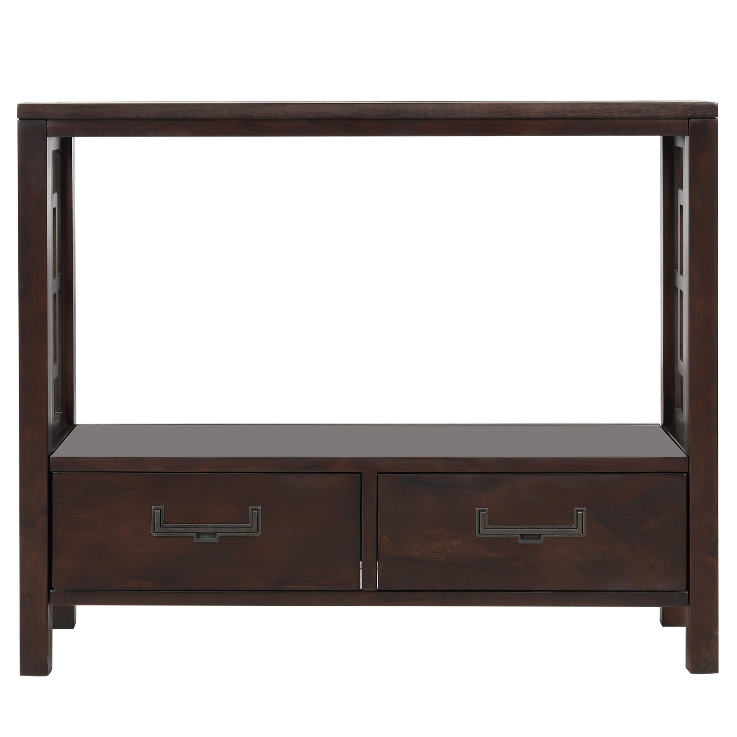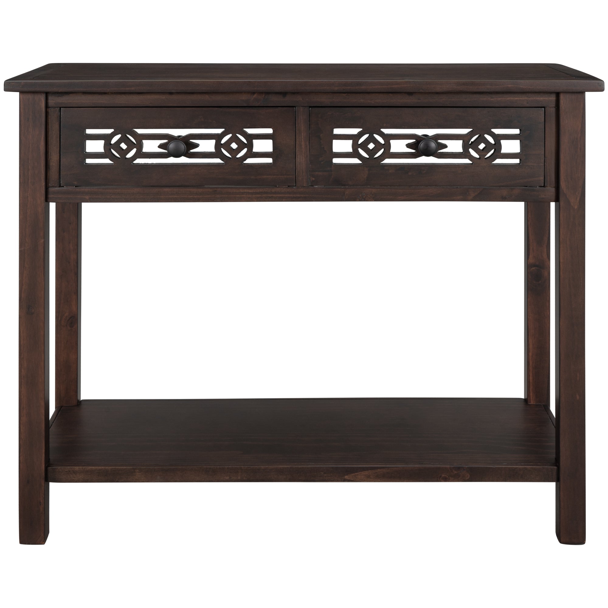 Classic Console Table with Hollow-out Decoration Two Top Drawers and Open Shelf
