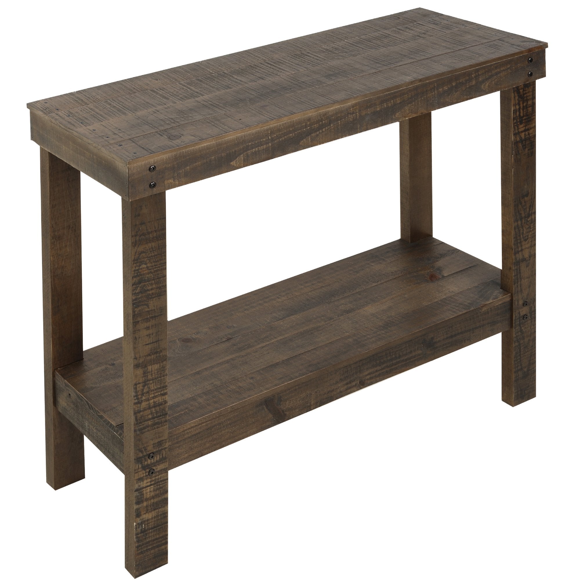 Rustic Industrial Design Shape Textured Metal Distressed Wood Console Table (Rustic Brown)