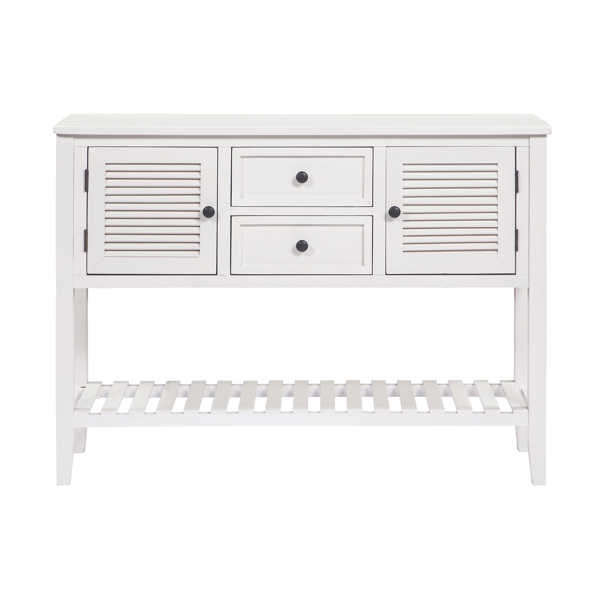 Retro Console Table Sideboard with Shutter doors, Two Storage Drawers and Bottom Shelf (White)