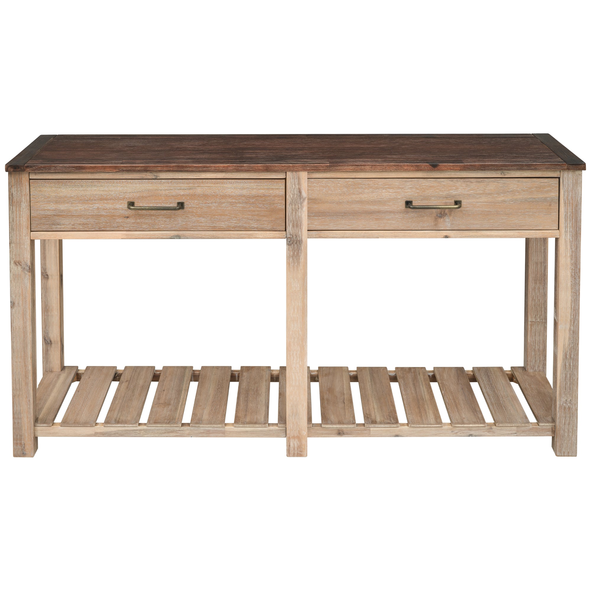 Classic Solid Console Table with 2 Drawers and Slatted Shelf, Entryway Table with Storage