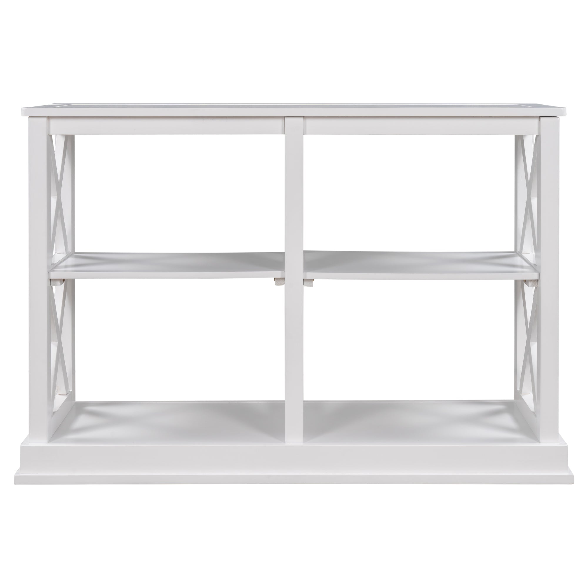 Console Table with 3-Tier Open Storage Spaces and “X” Legs, Narrow Sofa Entry Table for Living Room, Entryway and Hallway (White Wash)
