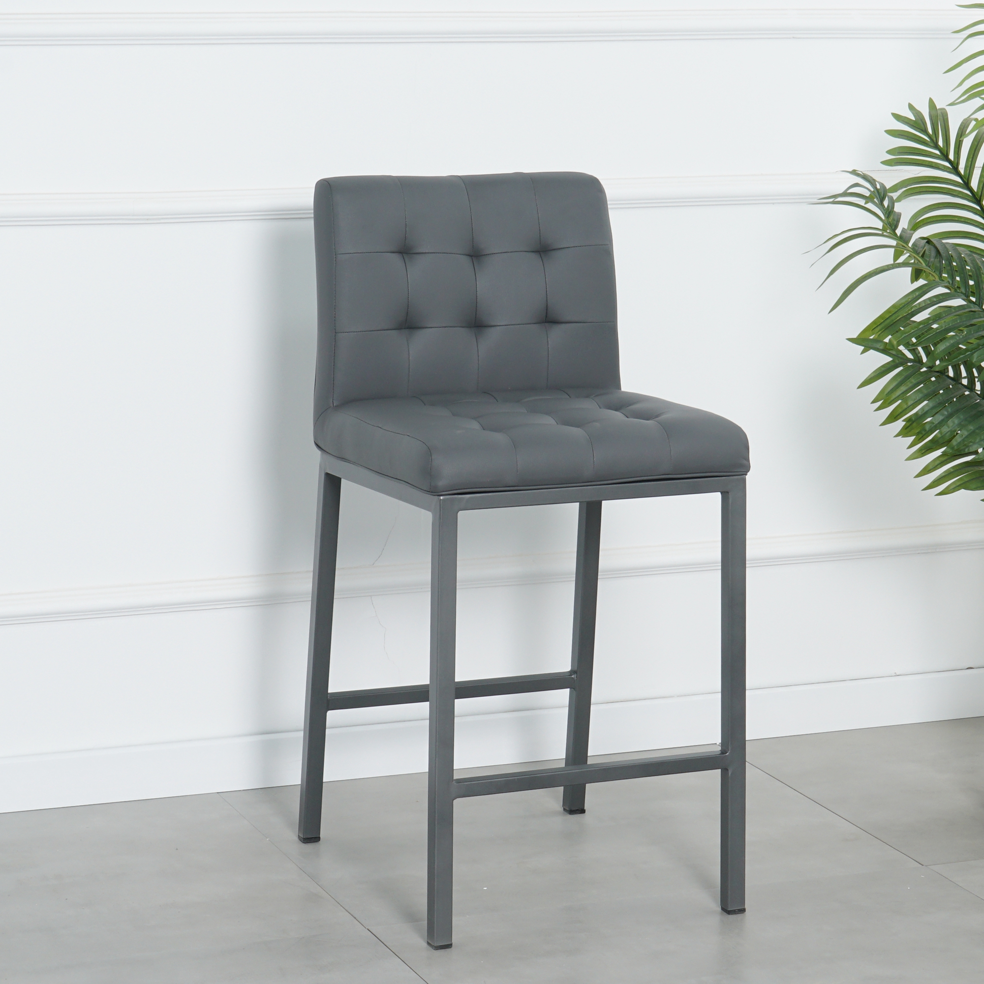 Cheap Modern Design High Counter Stool metal legs Kitchen Restaurant grey pu Bar Chair(set of 2)