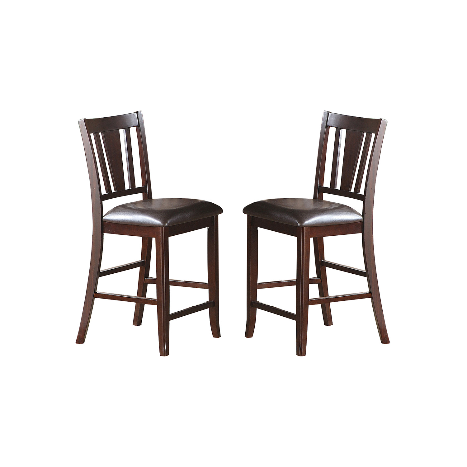 Set of 2 Chairs Dining Room Furniture Antique walnut Wood Finish Cushioned Solid wood Counter Height Chairs Faux Leather Cushion