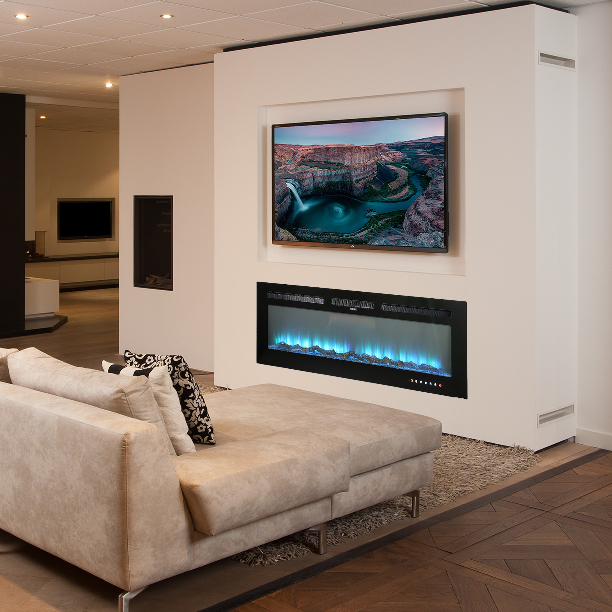 50 in. Recessed Insert Wall Mounted Electric Fireplace with Adjustable Brightness
