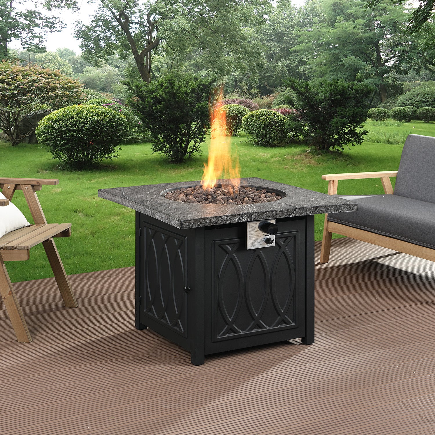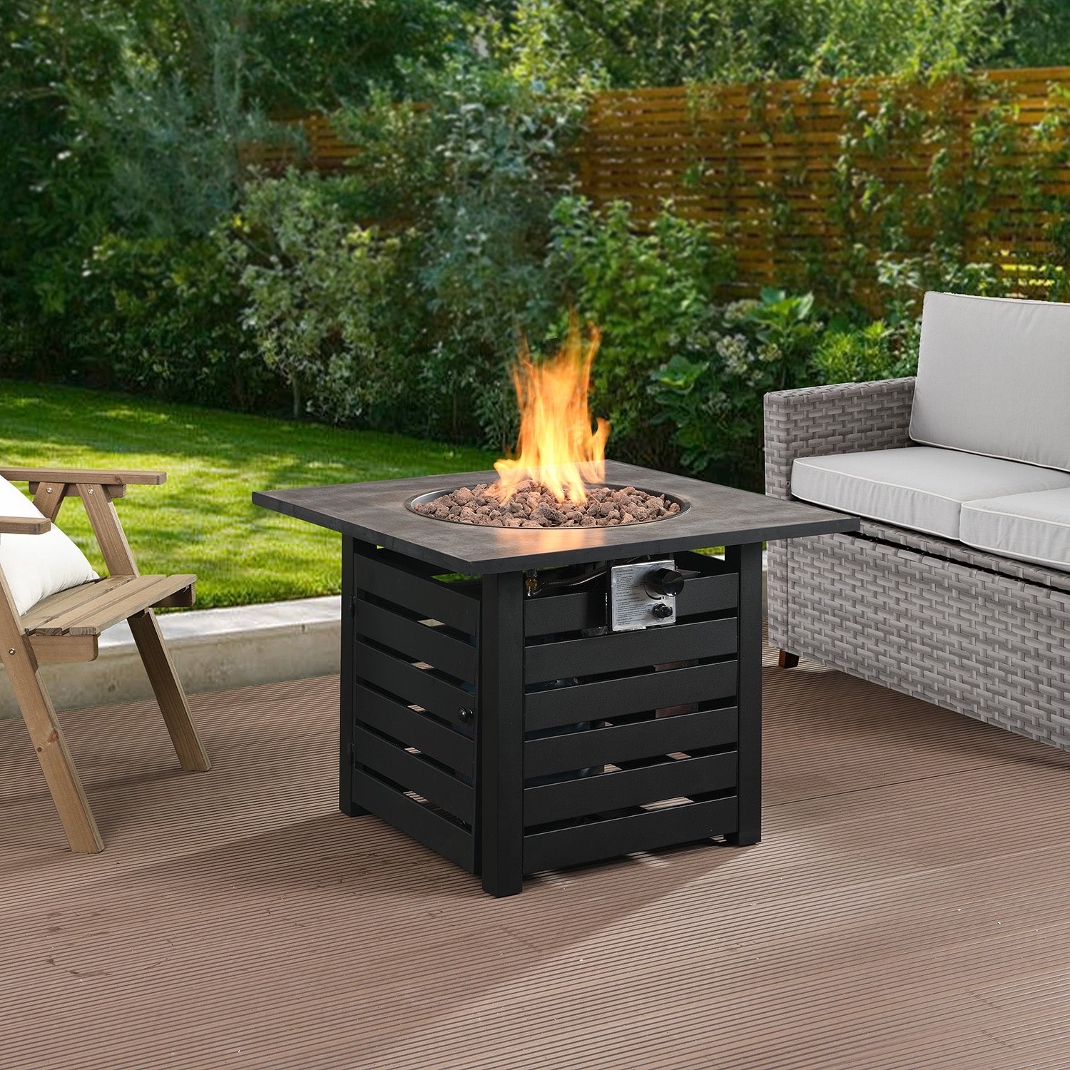 2022 LAUSAINT HOME 28 Inch Gas Propane Fire Pit Table,40000BTU Outdoor Auto-Ignition Fire Table,CSA Certification Patio Table with Lid for Backyard, Garden, Camping,Courtyard,Deck (Square-28 inch)