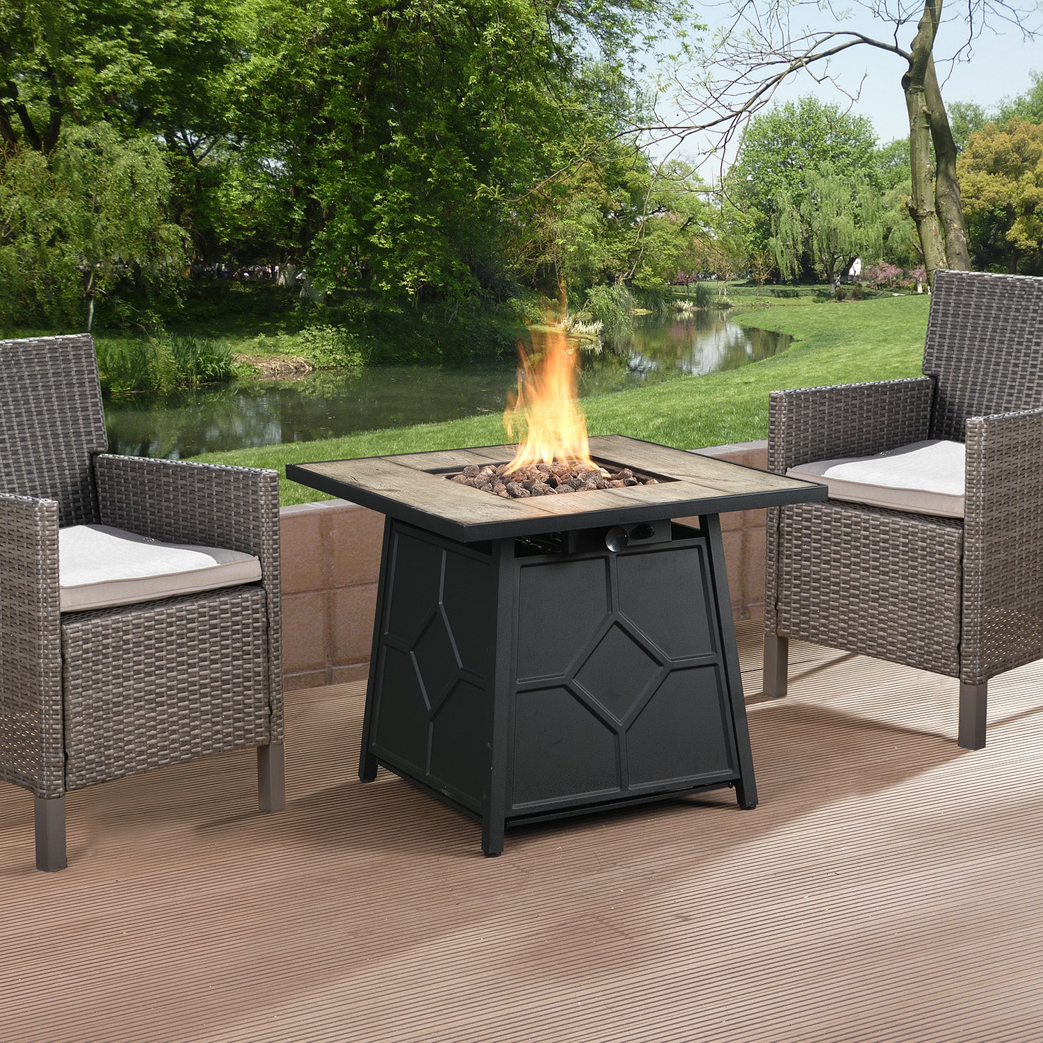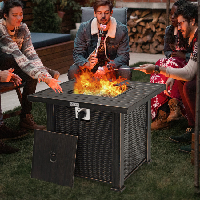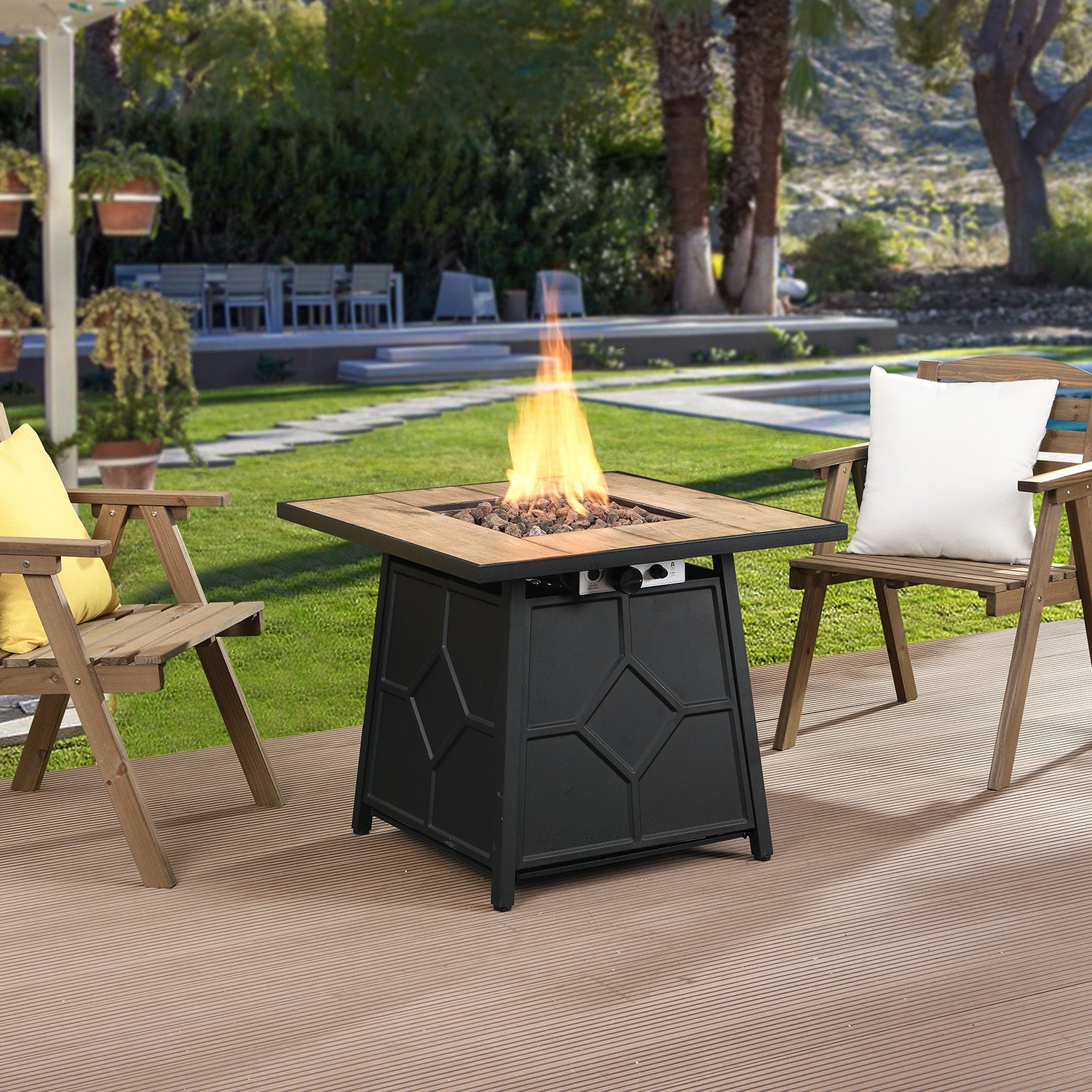 28inch Outdoor Gas Fire Pit Table , 48,000 BTU, Square Outside Propane Patio Fire-table, Bionic Wood Grain Lid