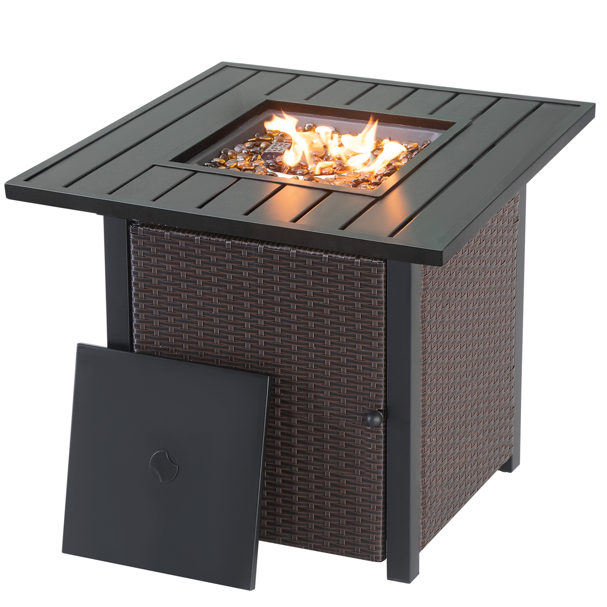 Brown Fire Pit Table, 30-inch Square 40,000 BTU Auto-Ignition Propane Gas Firepit with Waterproof Cover
