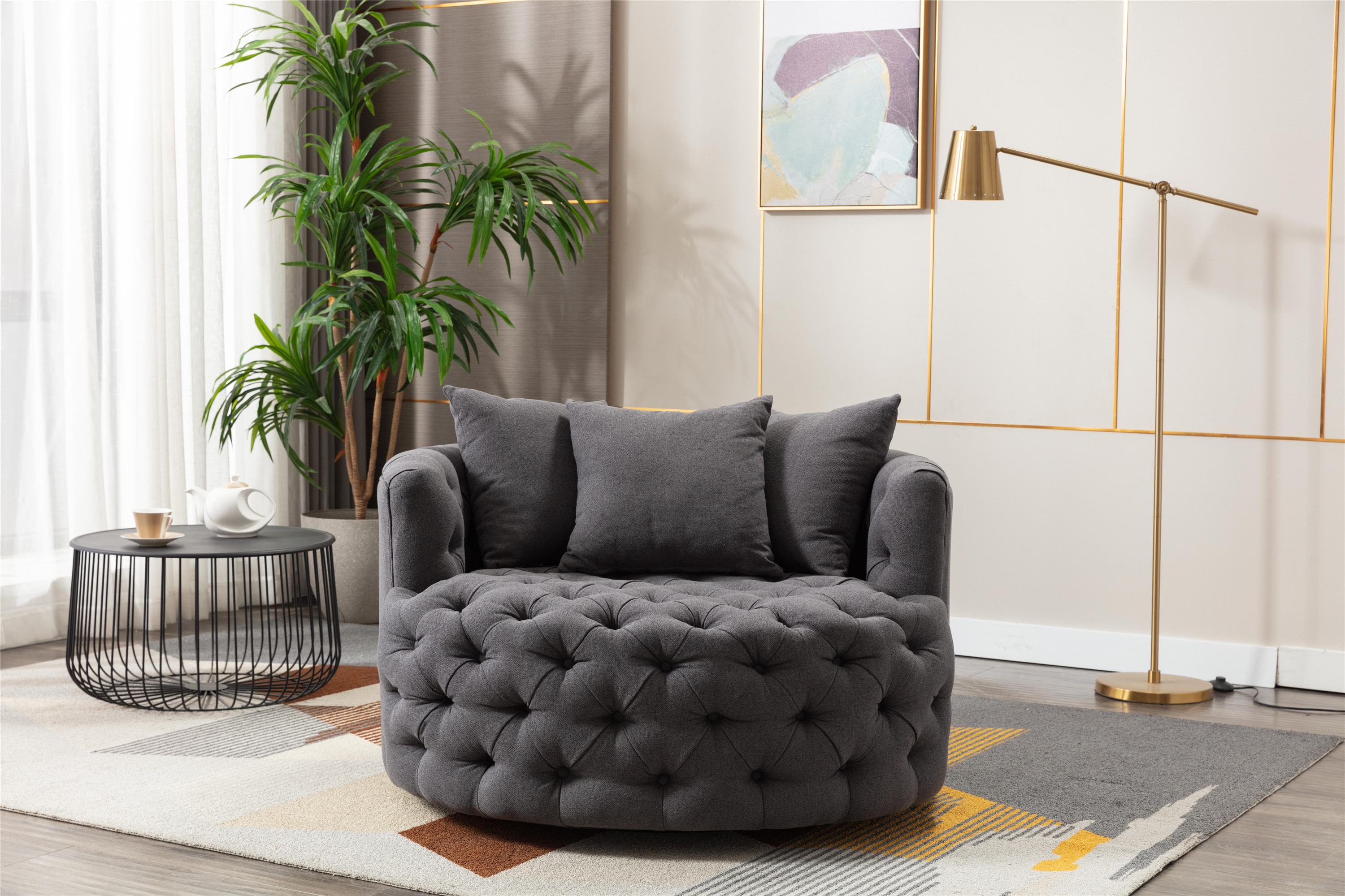 Coolmore Modern swivel accent chair barrel chair for hotel living room / Modern leisure chair Grey