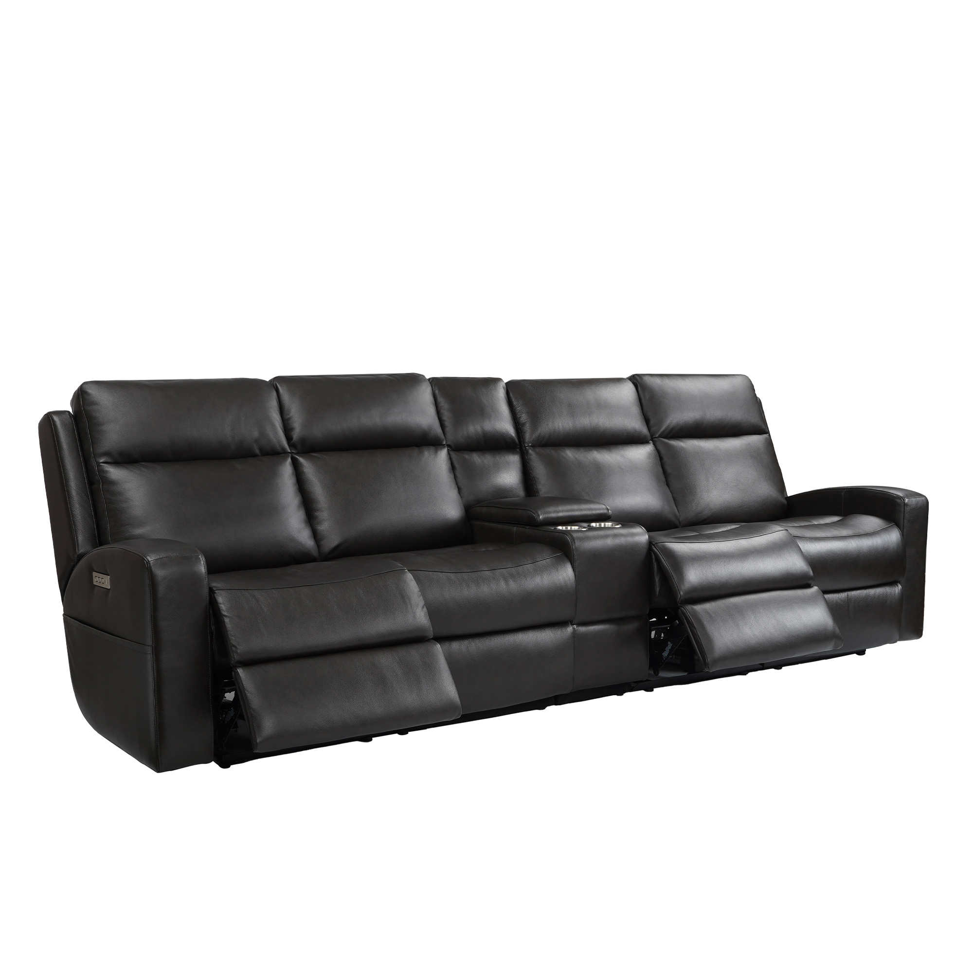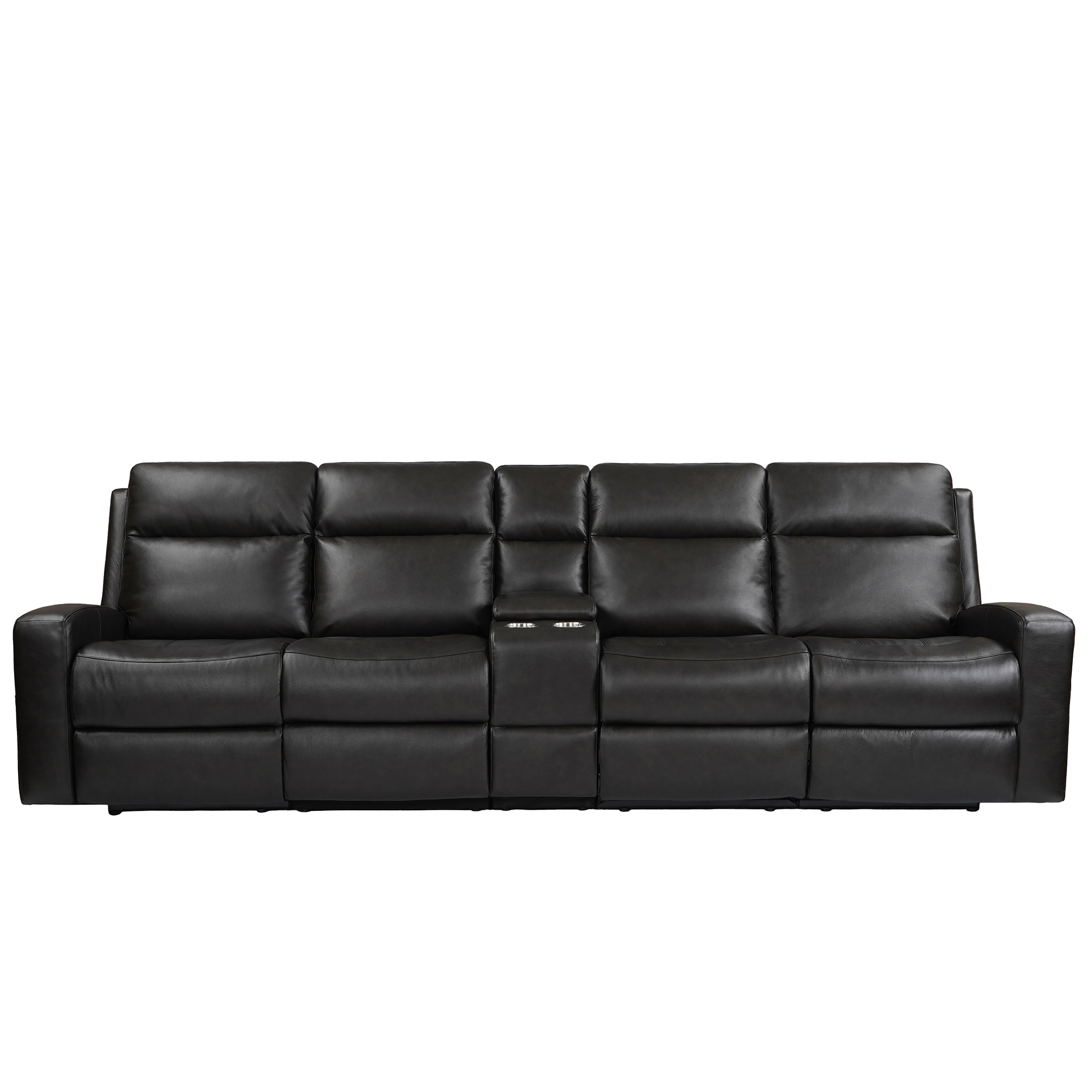Caleb Triple Power 4 Seats Sofa With Console | Top Grain Leather | Lumbar Support | Adjustable Headrest | Storage Side Pocket | USB & Type C Charger Port