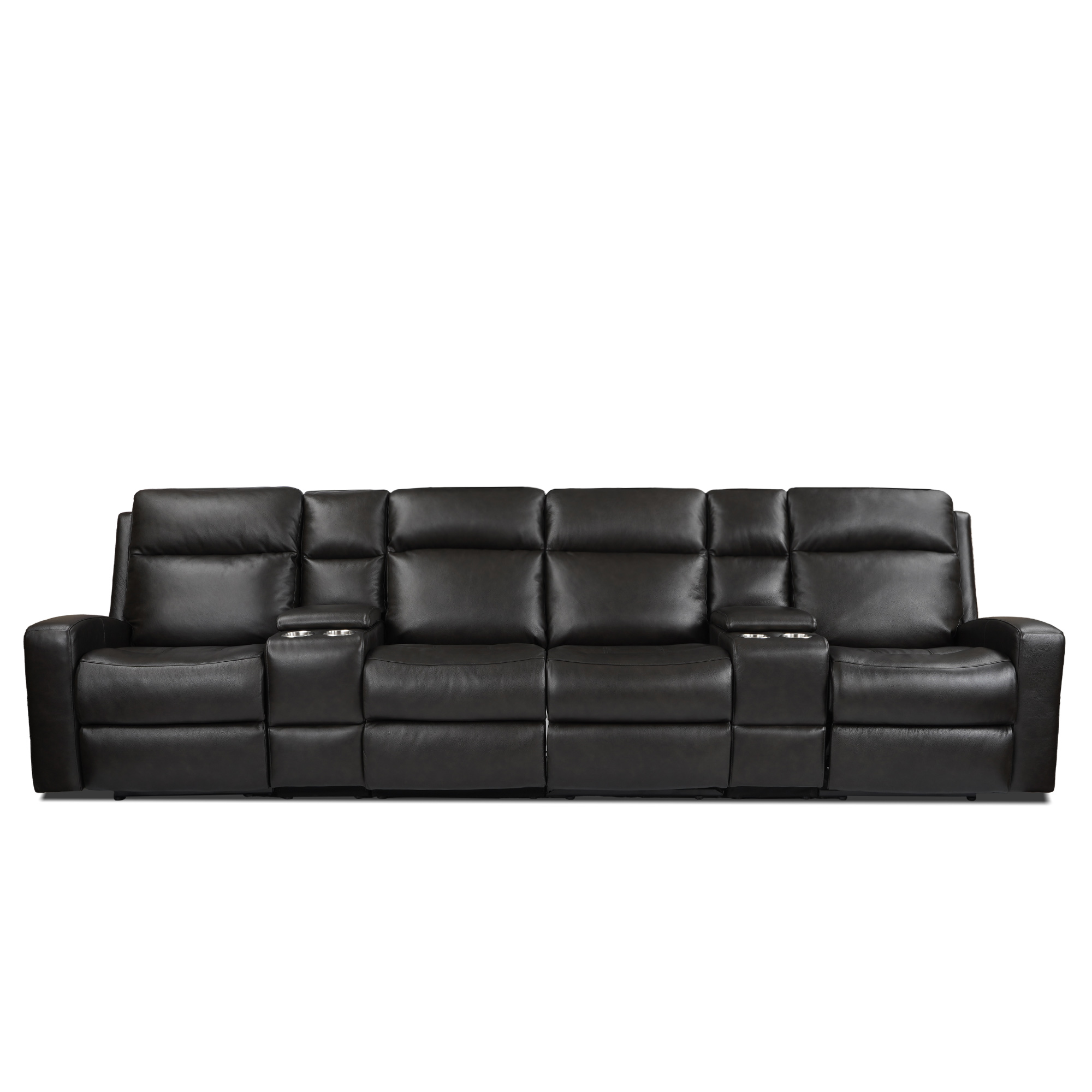 Caleb Triple Power 4 Seats Sofa With 2 Console | Top Grain Leather | Lumbar Support | Adjustable Headrest | Storage Side Pocket | USB & Type C Charger Port | All Seats With Power