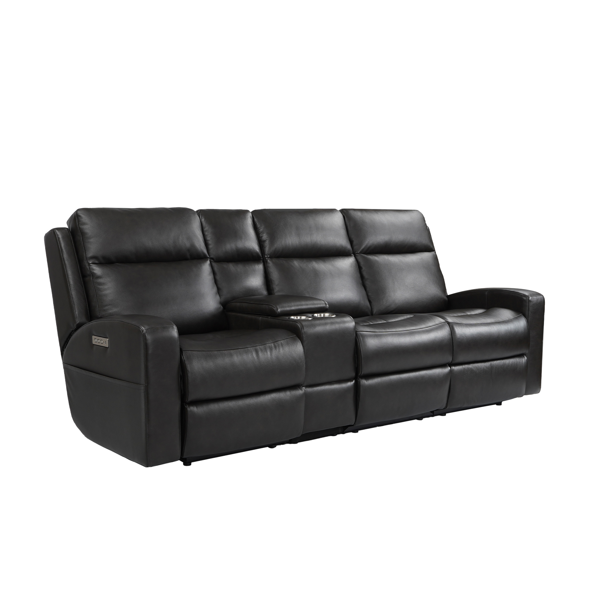Caleb Triple Power Sofa With Console | Top Grain Leather | Lumbar Support | Adjustable Headrest | Storage Side Pocket | USB & Type C Charger Port