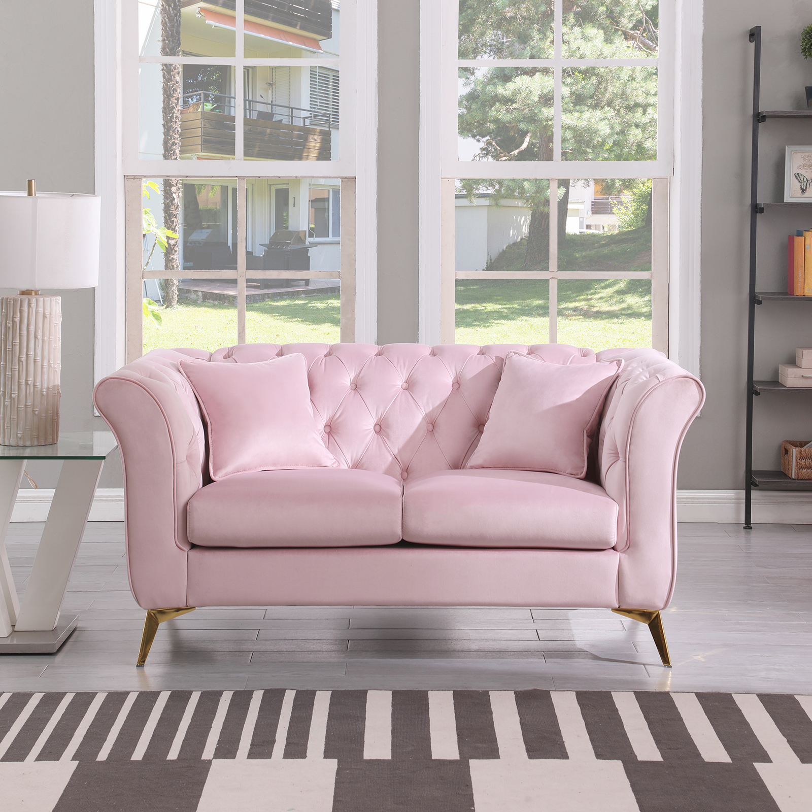 2707 sofa roll-up arm double armrest backrest with buttons 81.9" pink velvet living room apartment studio sofa