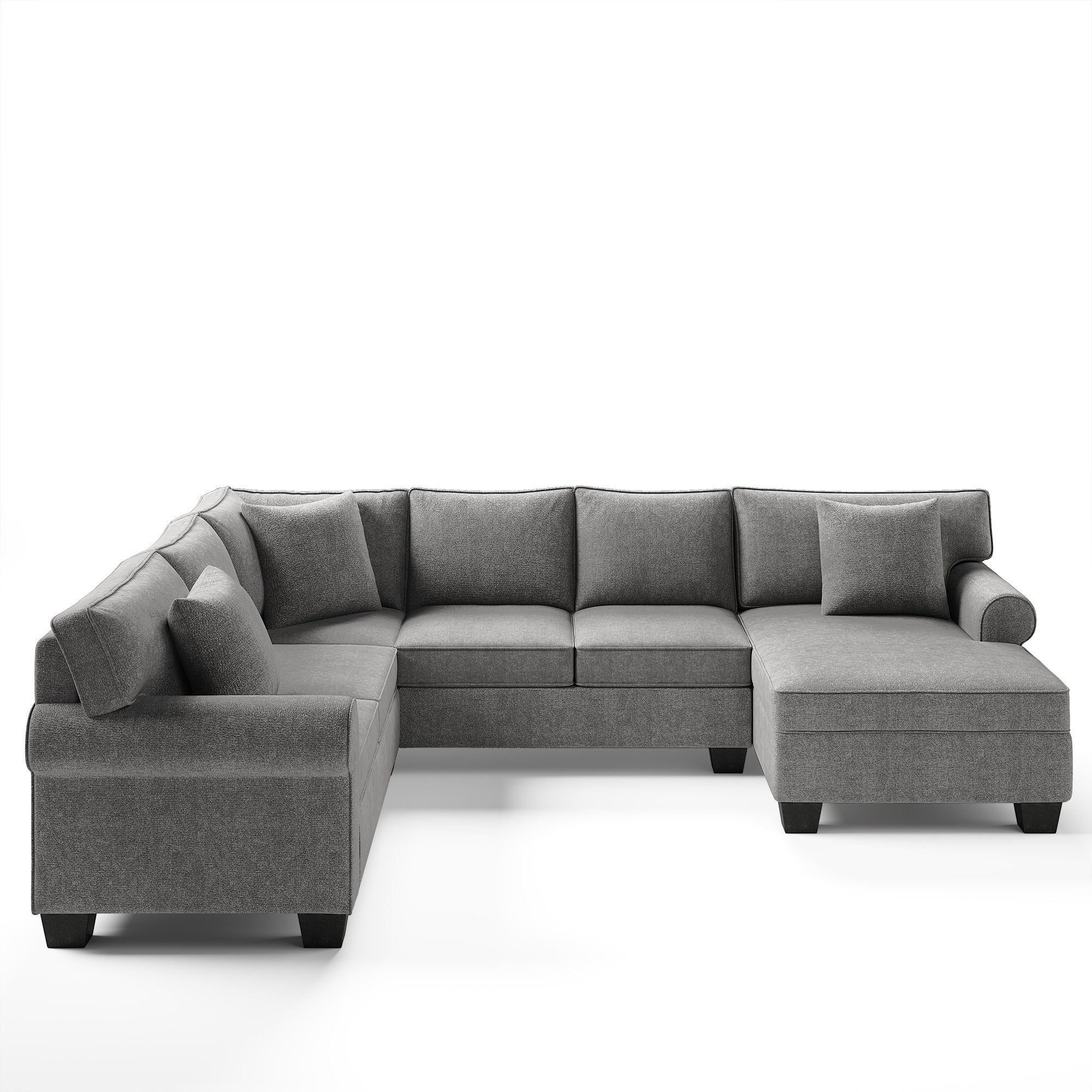 Modular U Shape Sectional Fabric Sofa (Grey)