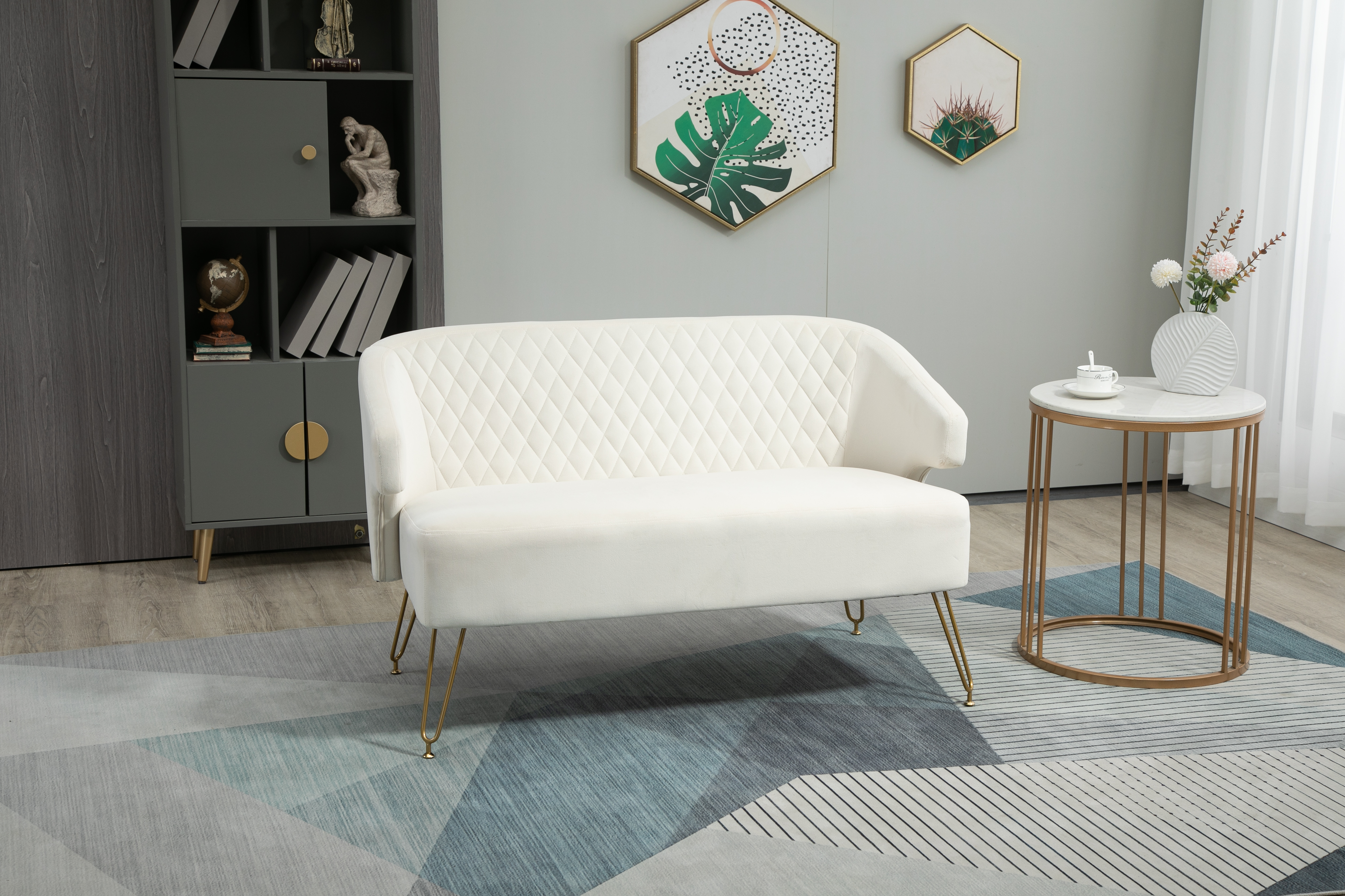 Twin Size Love seat Accent Sofa with Golden Metal Legs, Living Room Sofa with Tufted Backrest, 600 Pounds Weight Capacity