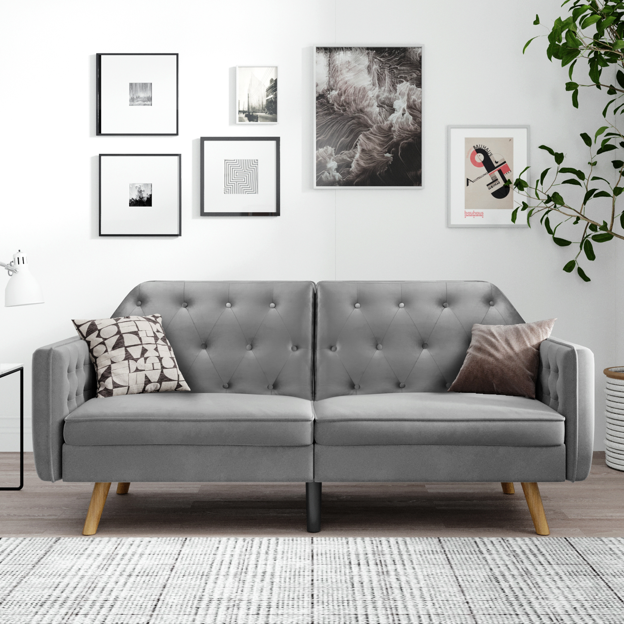 Orisfur. Futon Sofa Bed, Velvet Upholstered Modern Convertible Folding Futon Lounge Couch for Living Space, Apartment, and Dorm