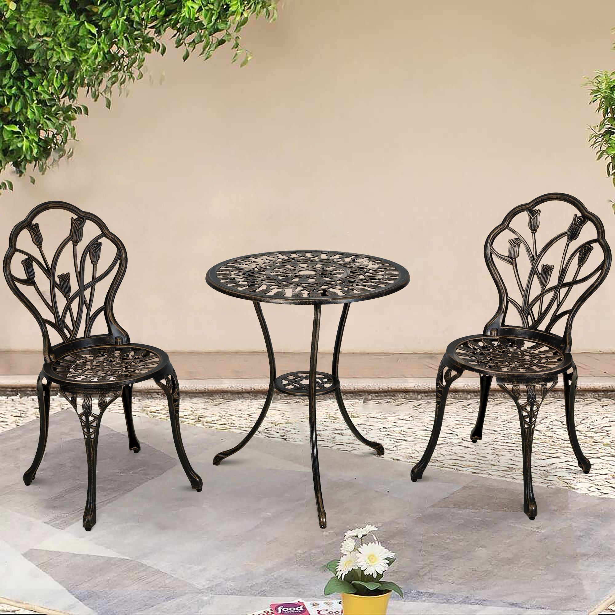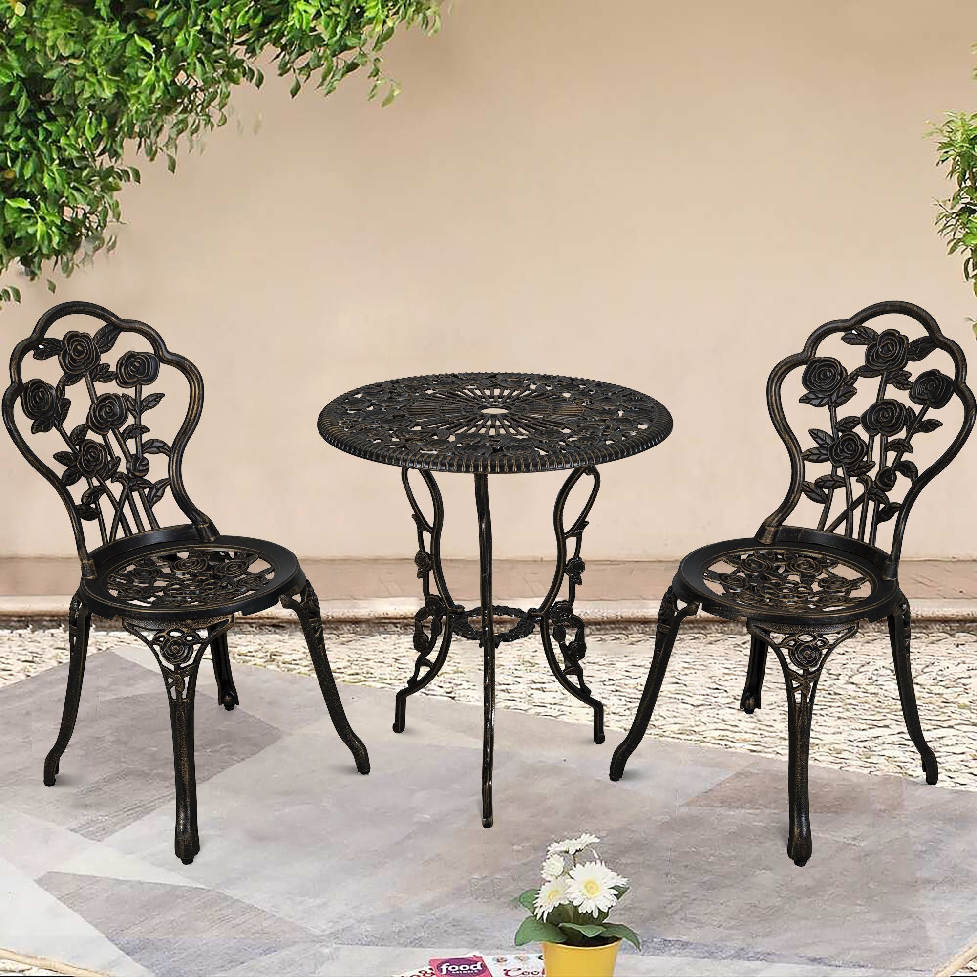 3-Piece Aluminum Outdoor Bistro Set with Umbrella Hole