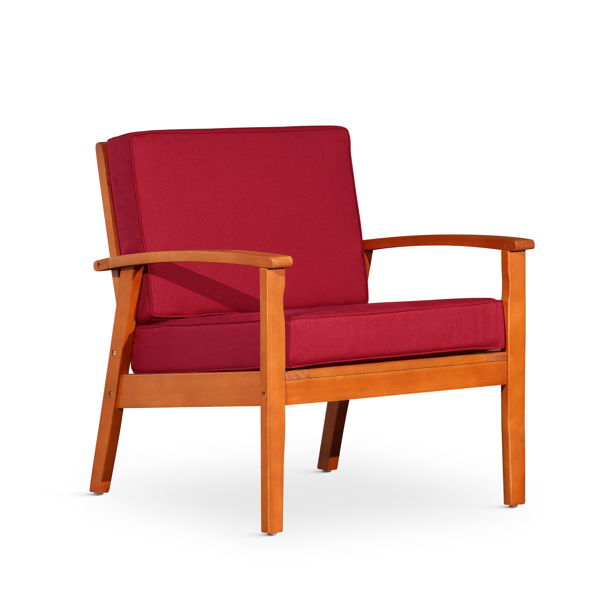 Deep Seat Eucalyptus Chair Natural Oil Finish, Burgundy Cushions