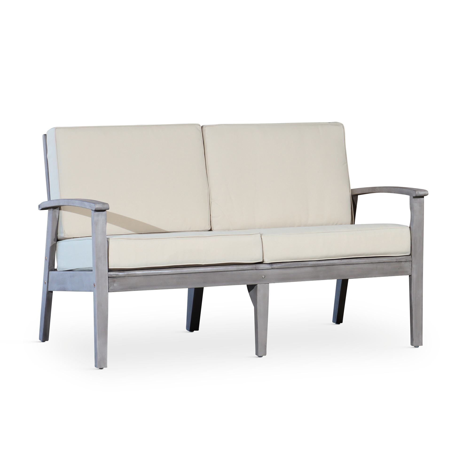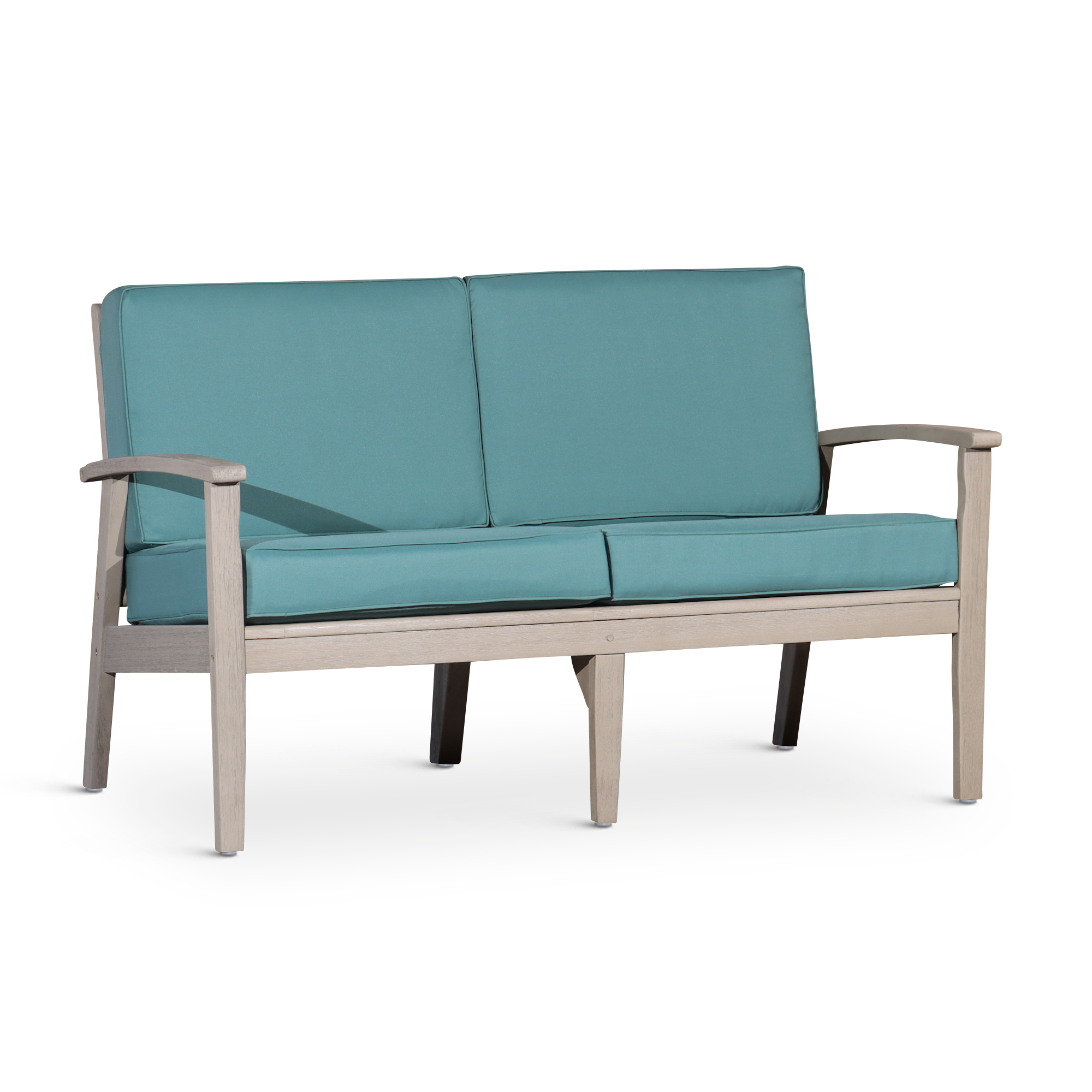 Eucalyptus Loveseat with Cushions, Driftwood Gray Finish, Cream Cushions