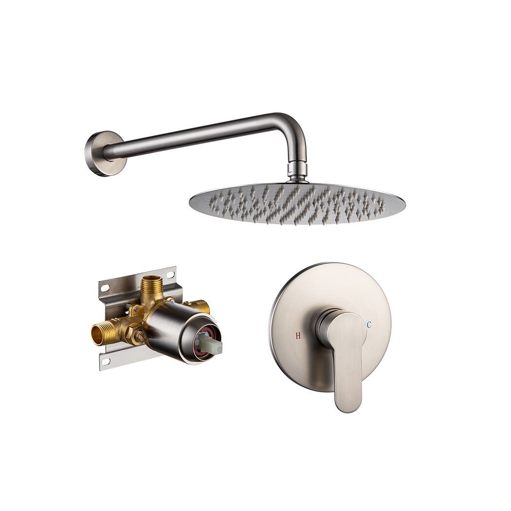 Shower Faucet Set, Wall Mount Round hower System Mixer Set, 10 Inch Rain Shower Head , Solid Brass, Rough-in Valve Included