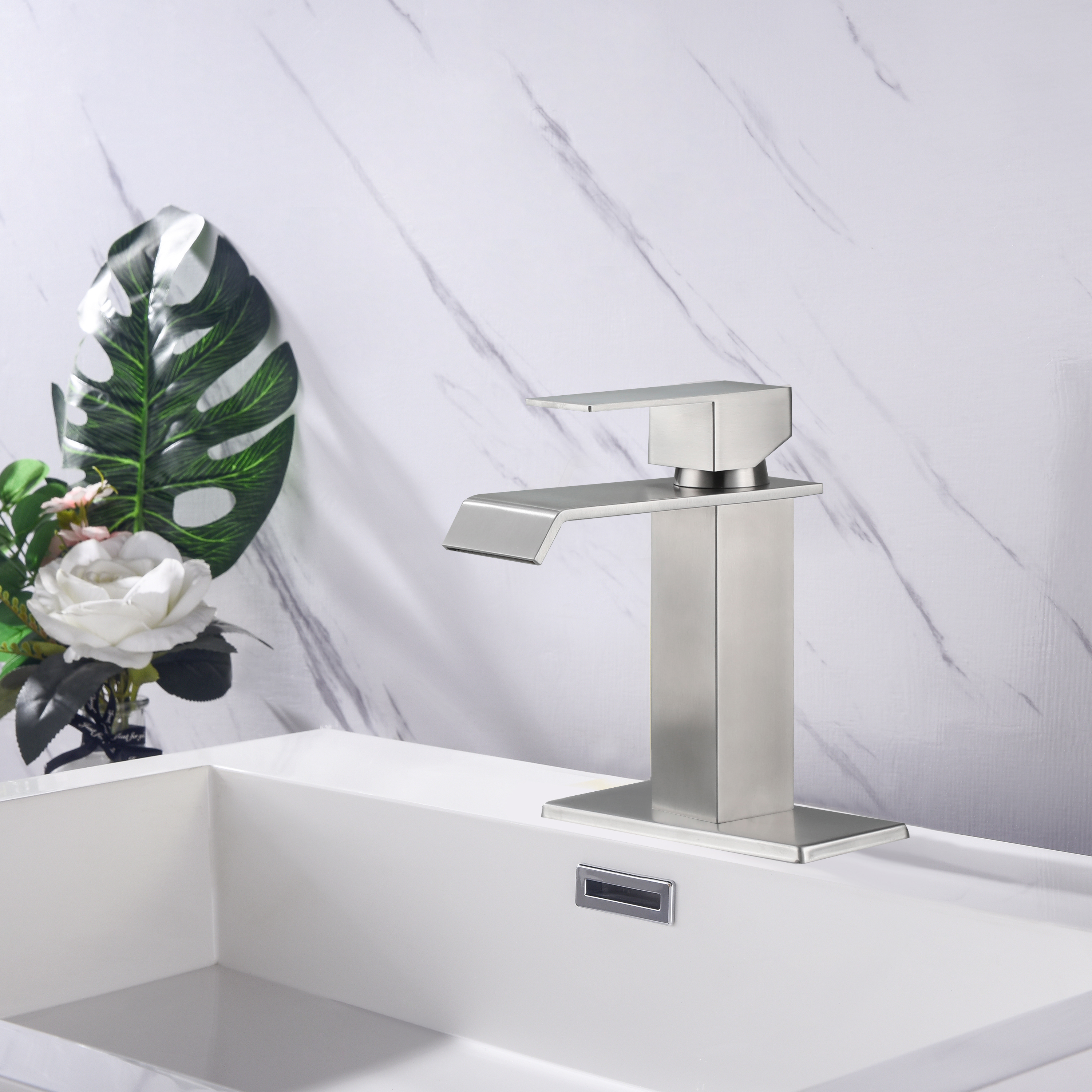 Waterfall Spout Bathroom Faucet,Single Handle Bathroom Vanity Sink Faucet