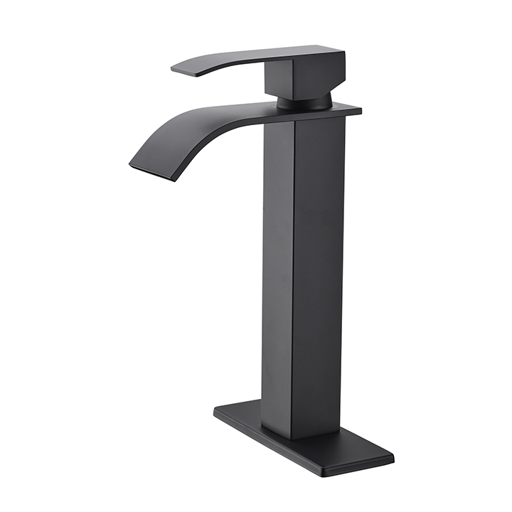 Waterfall Spout Bathroom Faucet,Single Handle Bathroom Vanity Sink Faucet matt black