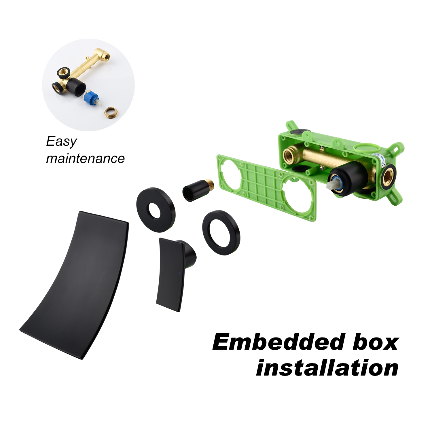 Matte Black 8 Inch Waterfall Bathroom Sink Faucet with Hoses