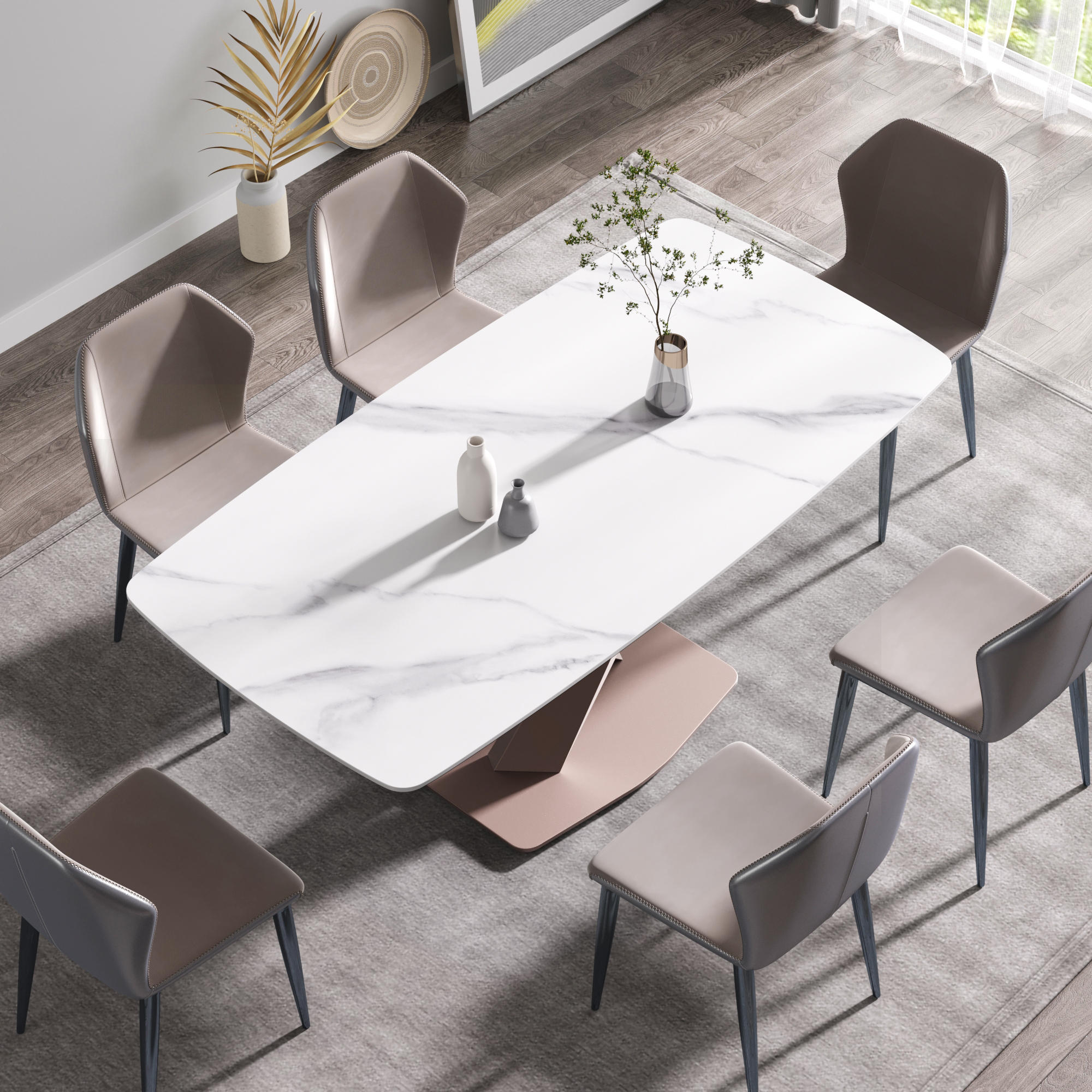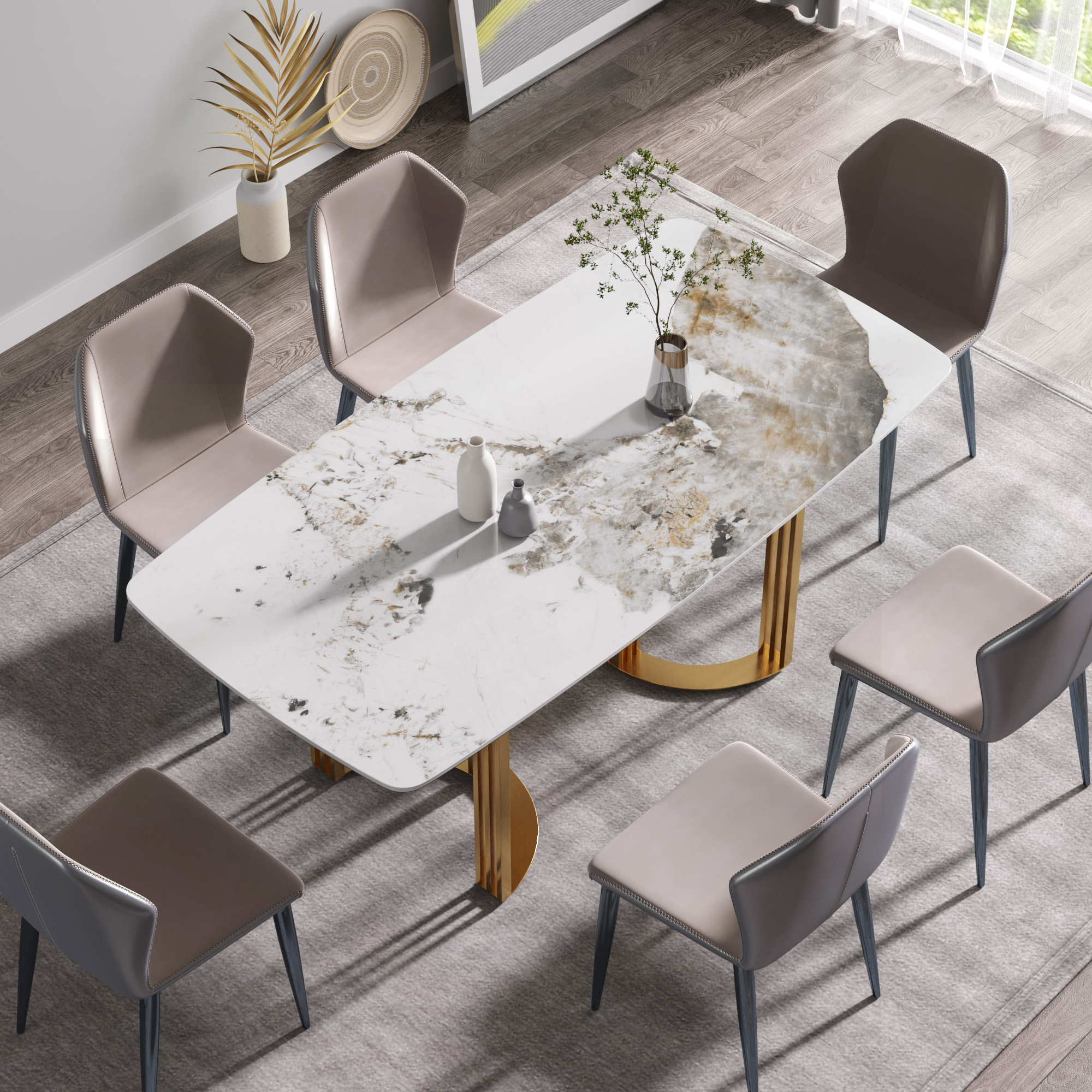 70.87"Modern artificial stone Pandora white curved metal leg dining table-can accommodate 6-8 people