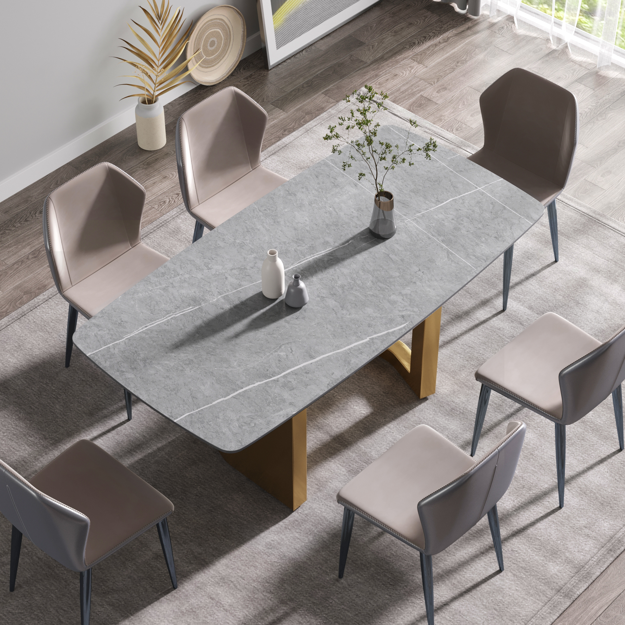 70.87"Modern artificial stone gray curved golden metal leg dining table-can accommodate 6-8 people