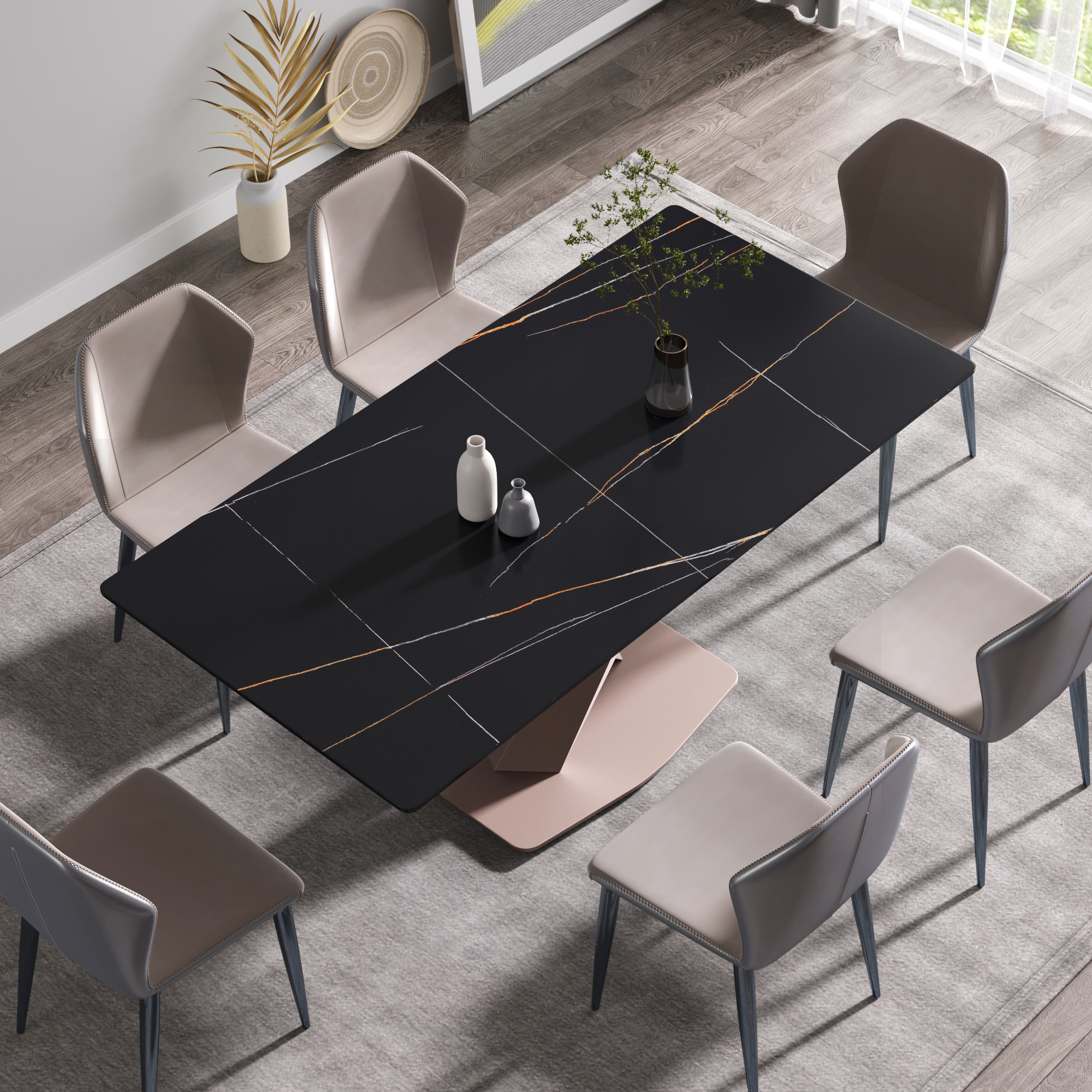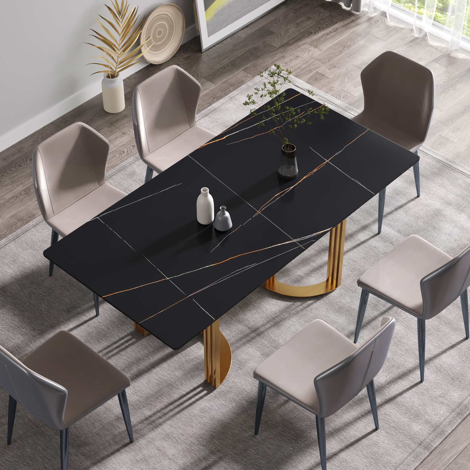 70.87"Modern artificial stone black curved black metal leg dining table-can accommodate 6-8 people