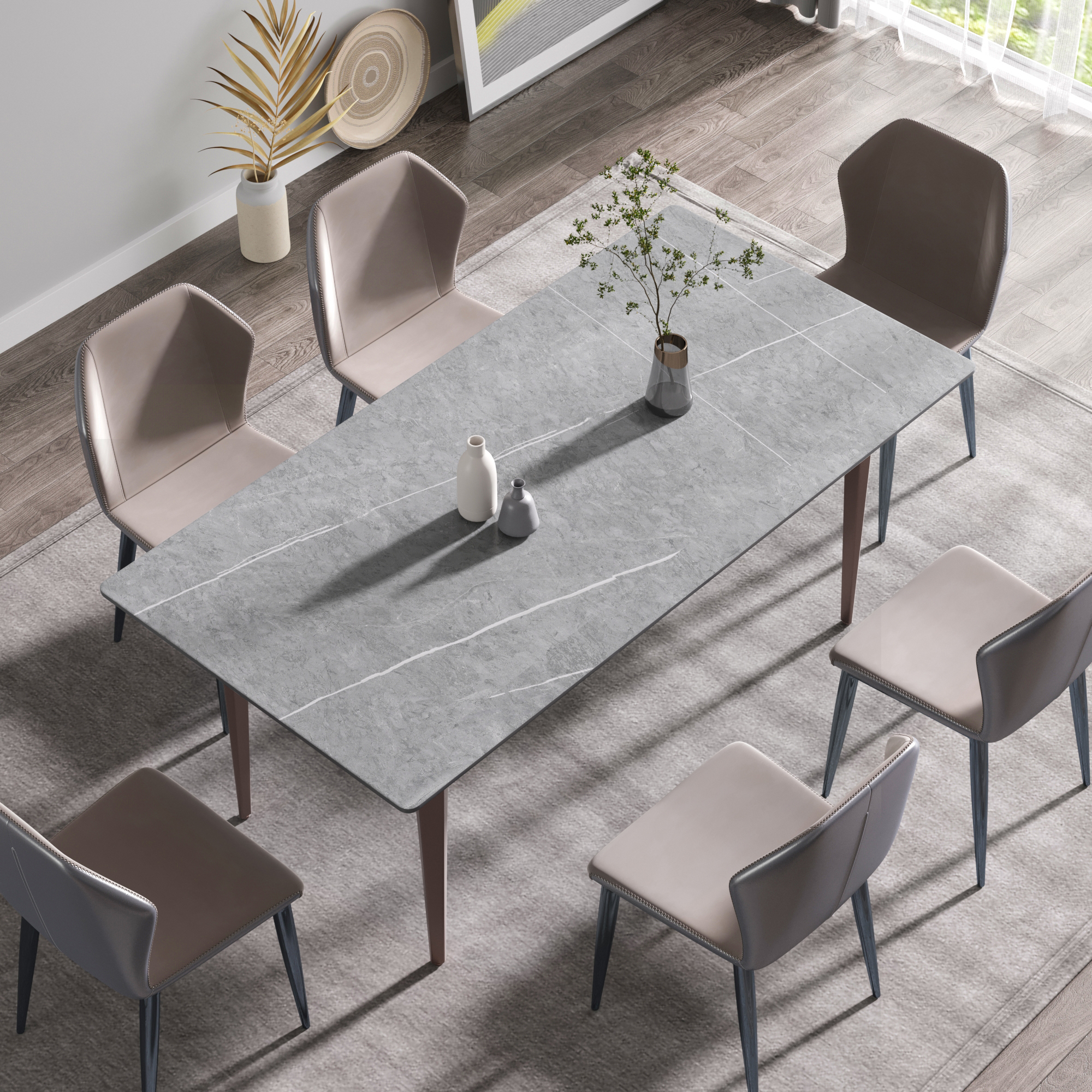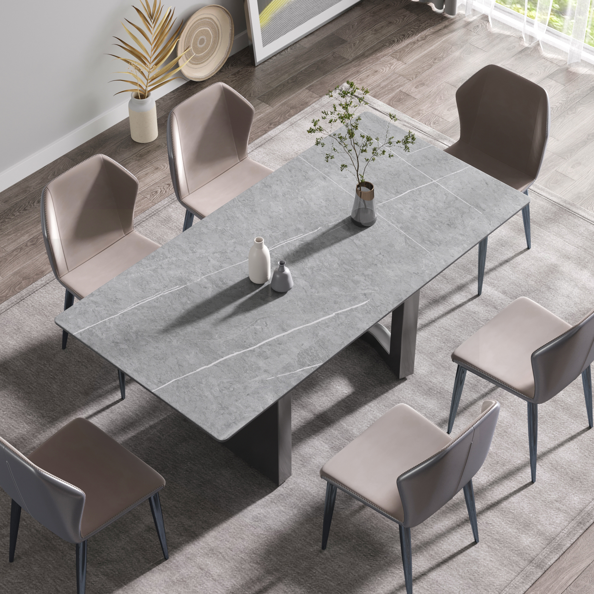 70.87" modern artificial stone gray straight edge metal leg dining table-can accommodate 6-8 people
