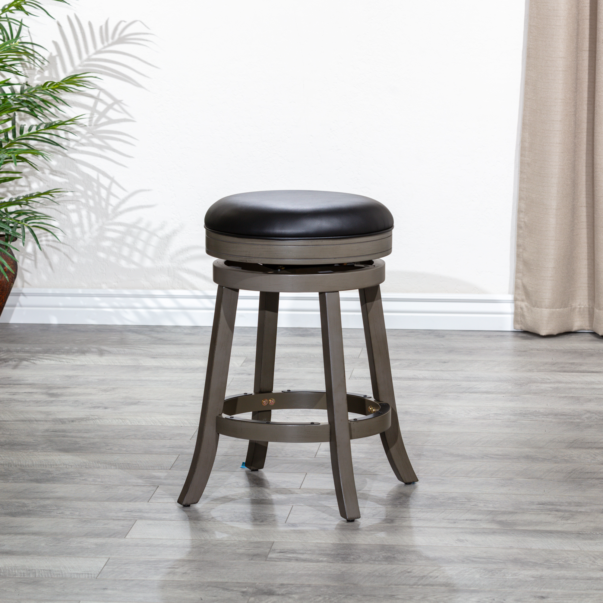 24" Counter Stool, Weathered Gray, Black Leather Seat