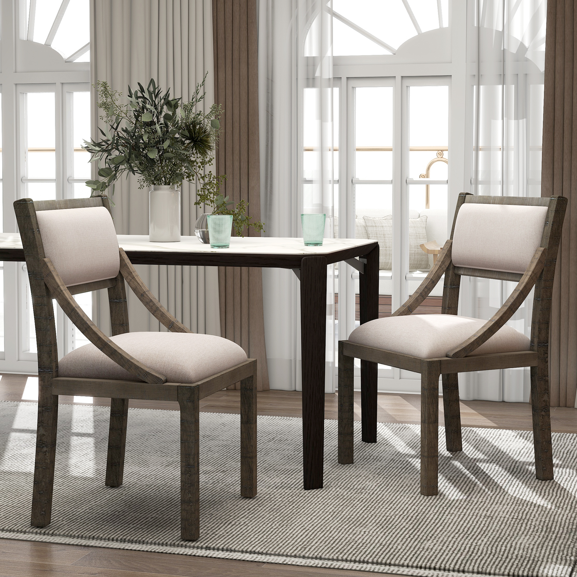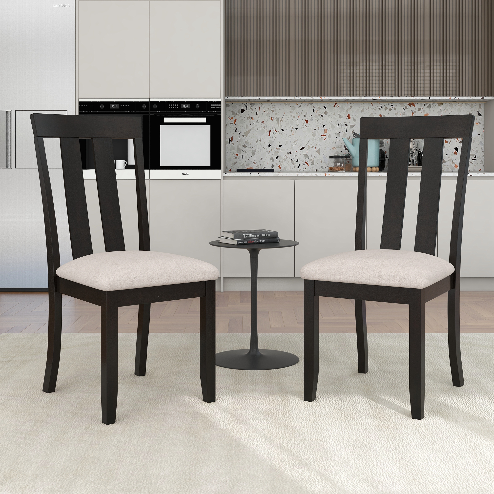 TREXM Set of 2 Dining Chairs Soft Fabric Dining Room Chairs with Seat Cushions and Curved Back (Espresso)