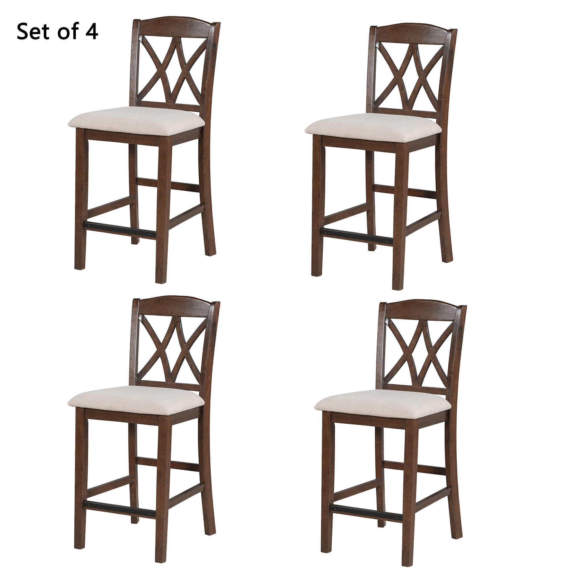 TOPMAX Casual Counter Height Wood Upholstered Dining Chairs with Cross Backs, Set of 4, Walnut+Beige