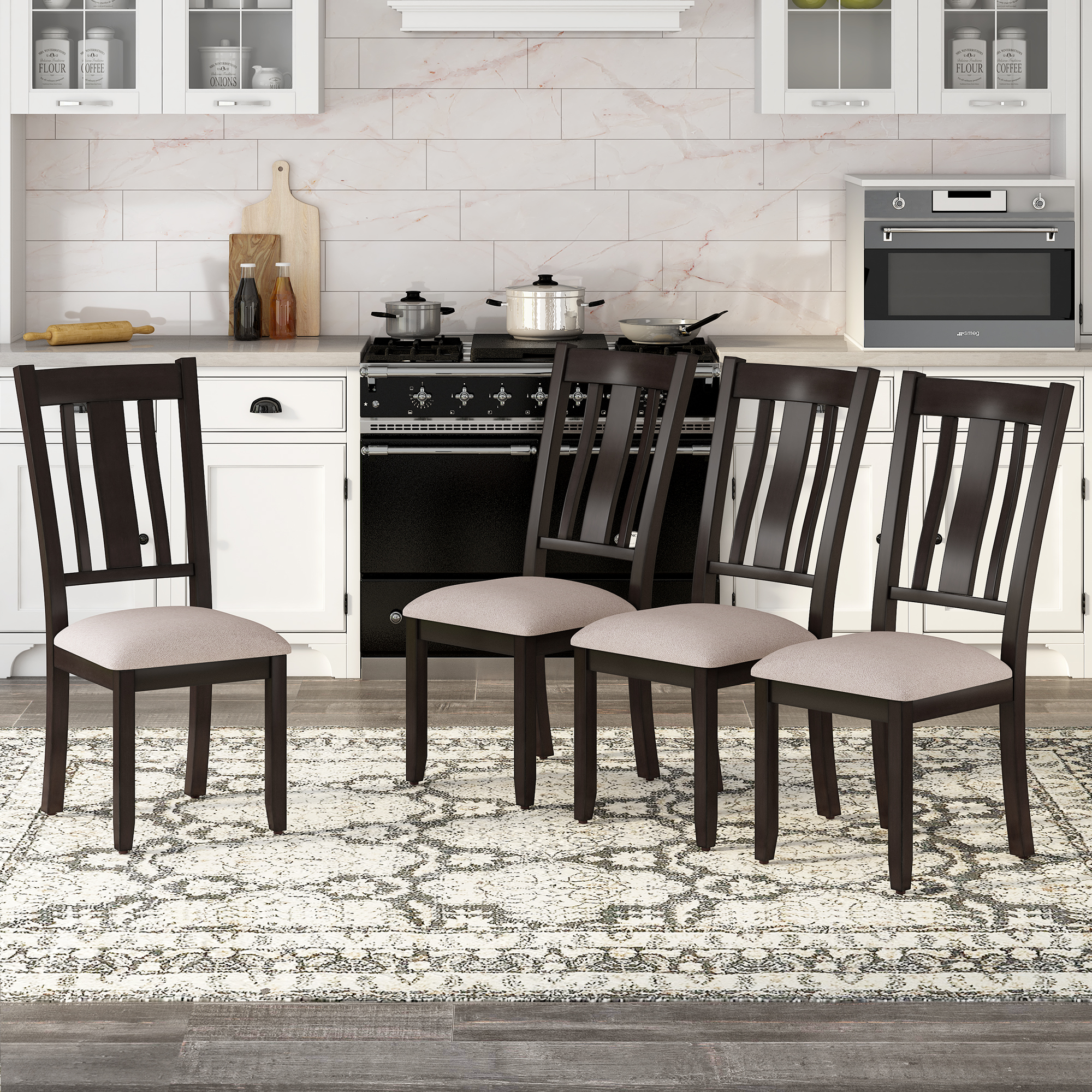 TREXM Industrial Style Wooden Dining Chairs with Ergonomic Design, Set of 4 (Espresso)
